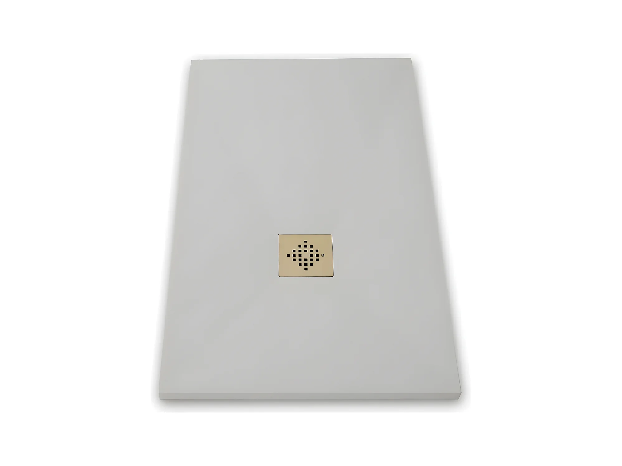 Mineralguss-Duschwanne extra flach PURE Schieferoptik grau 100x100 cm Edelstahl in chrom