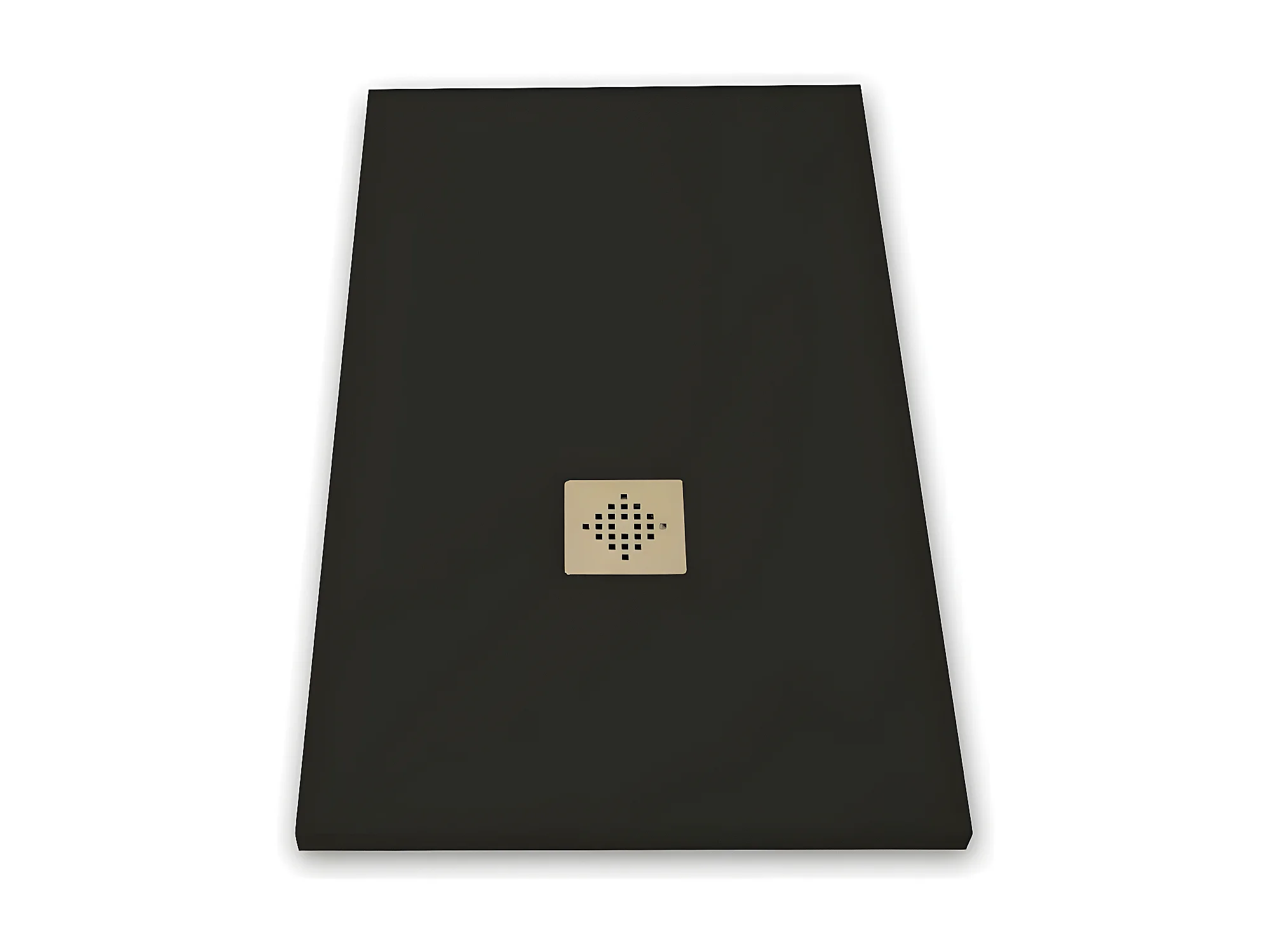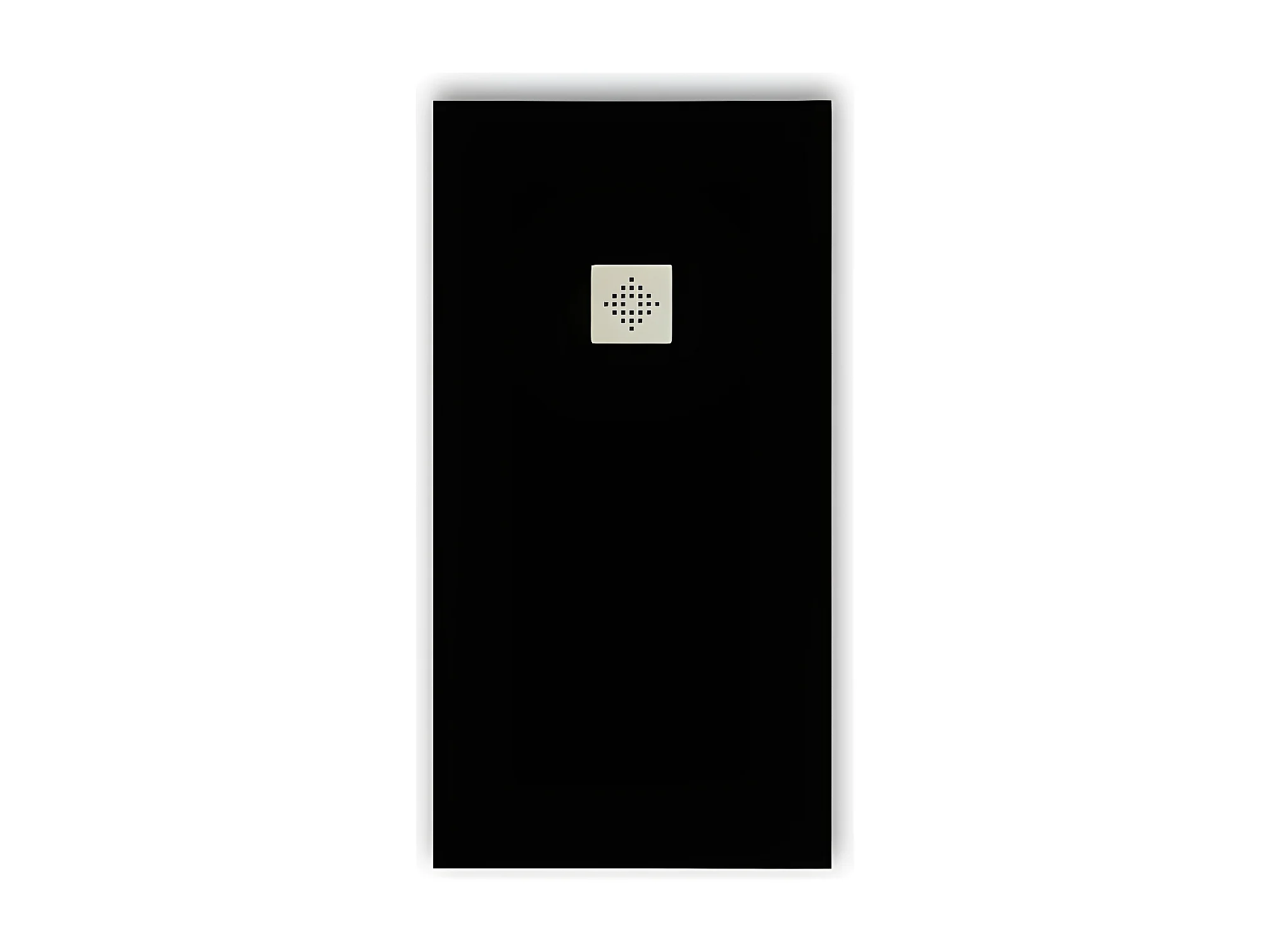 Mineralguss-Duschwanne extra flach PURE Schieferoptik schwarz 100x150 cm Edelstahl in chrom