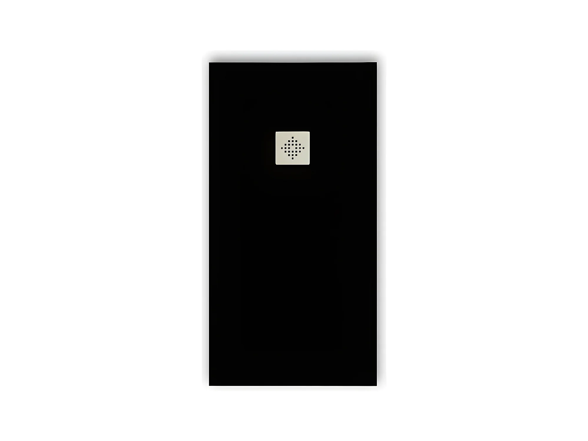 Mineralguss-Duschwanne extra flach PURE Schieferoptik schwarz 100x180 cm Edelstahl in chrom