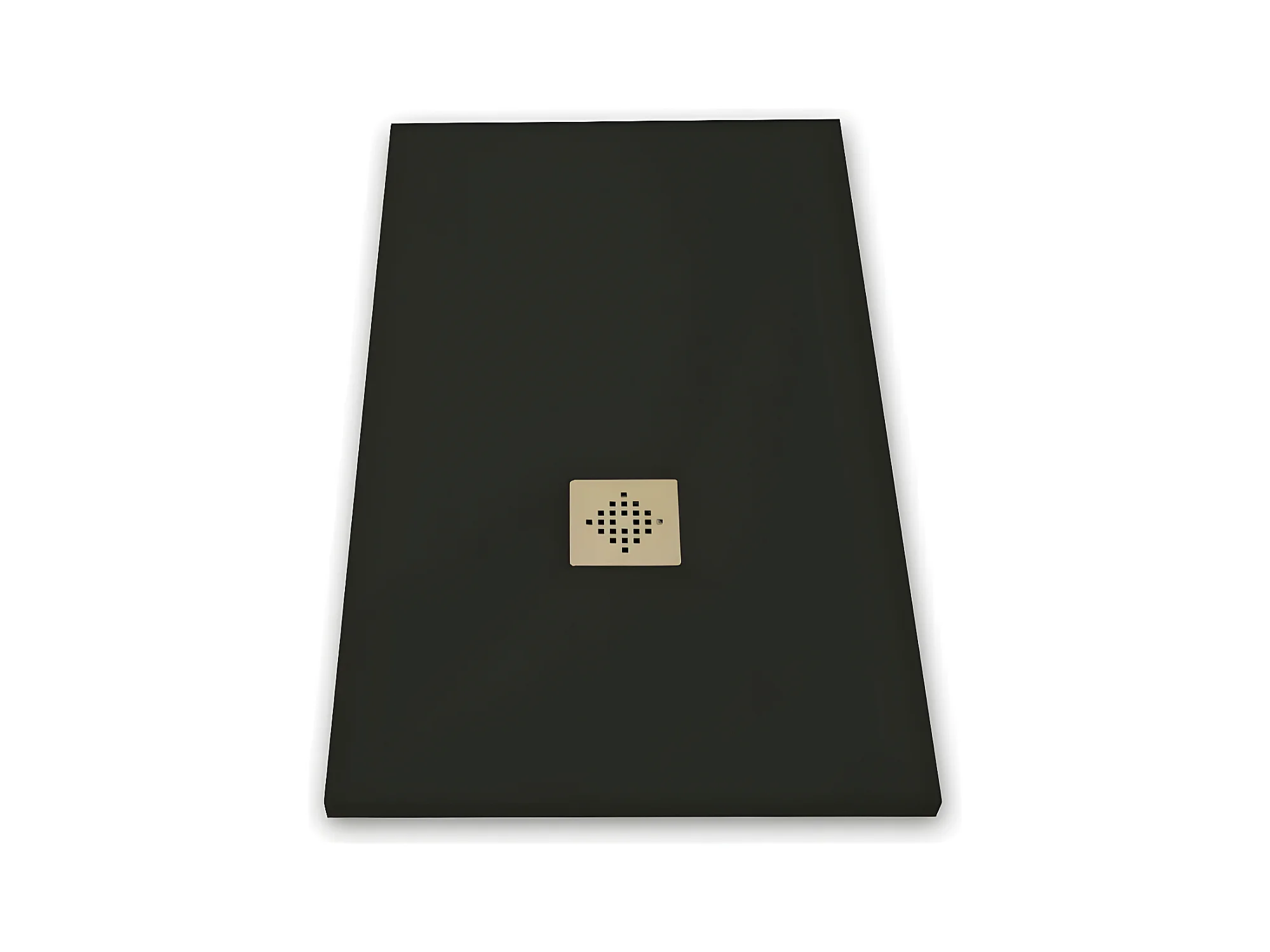 Mineralguss-Duschwanne extra flach PURE Schieferoptik schwarz 80x160 cm Edelstahl in chrom