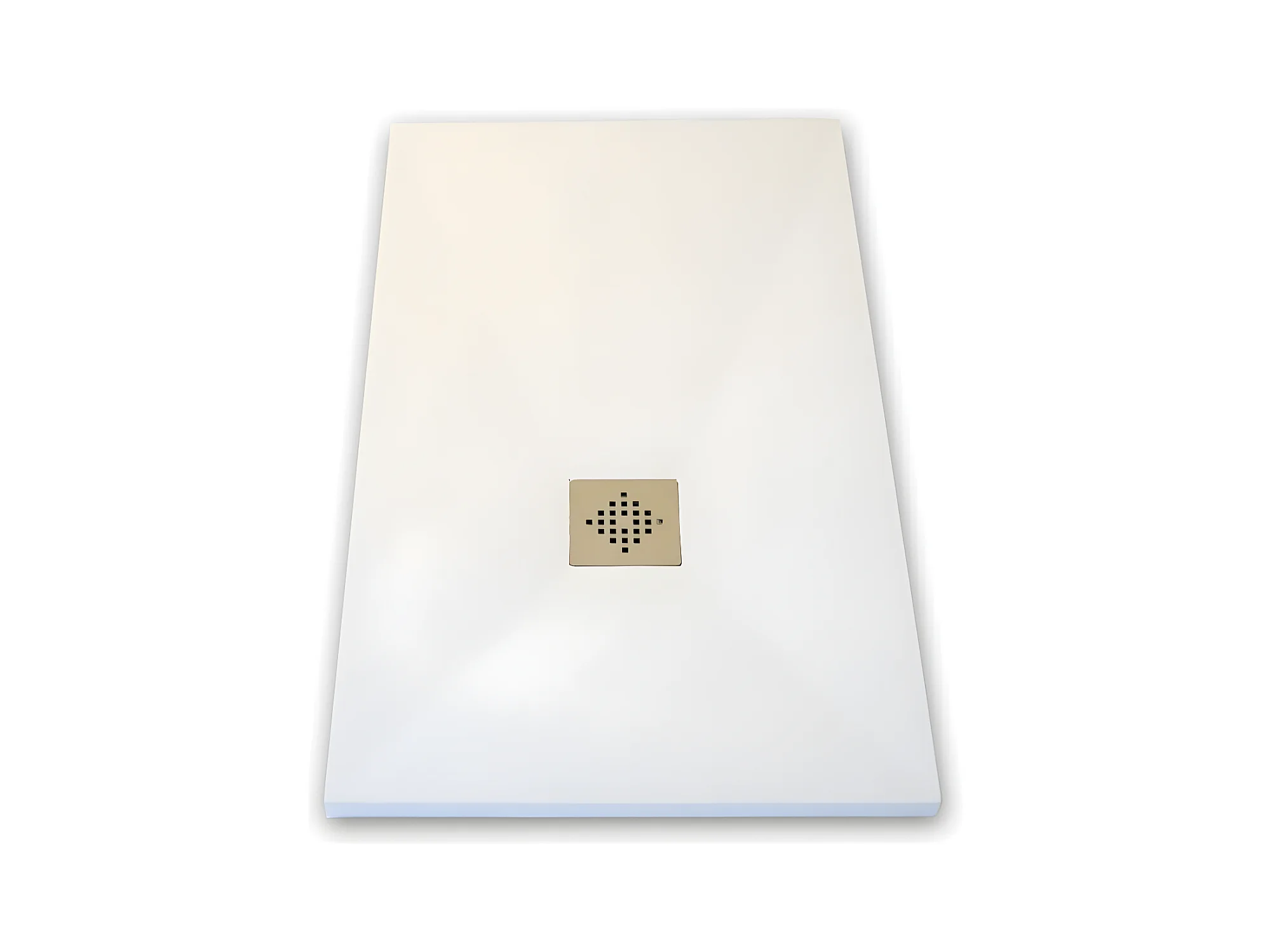 Mineralguss-Duschwanne extra flach PURE Schieferoptik weiß 100x140 cm Edelstahl in chrom