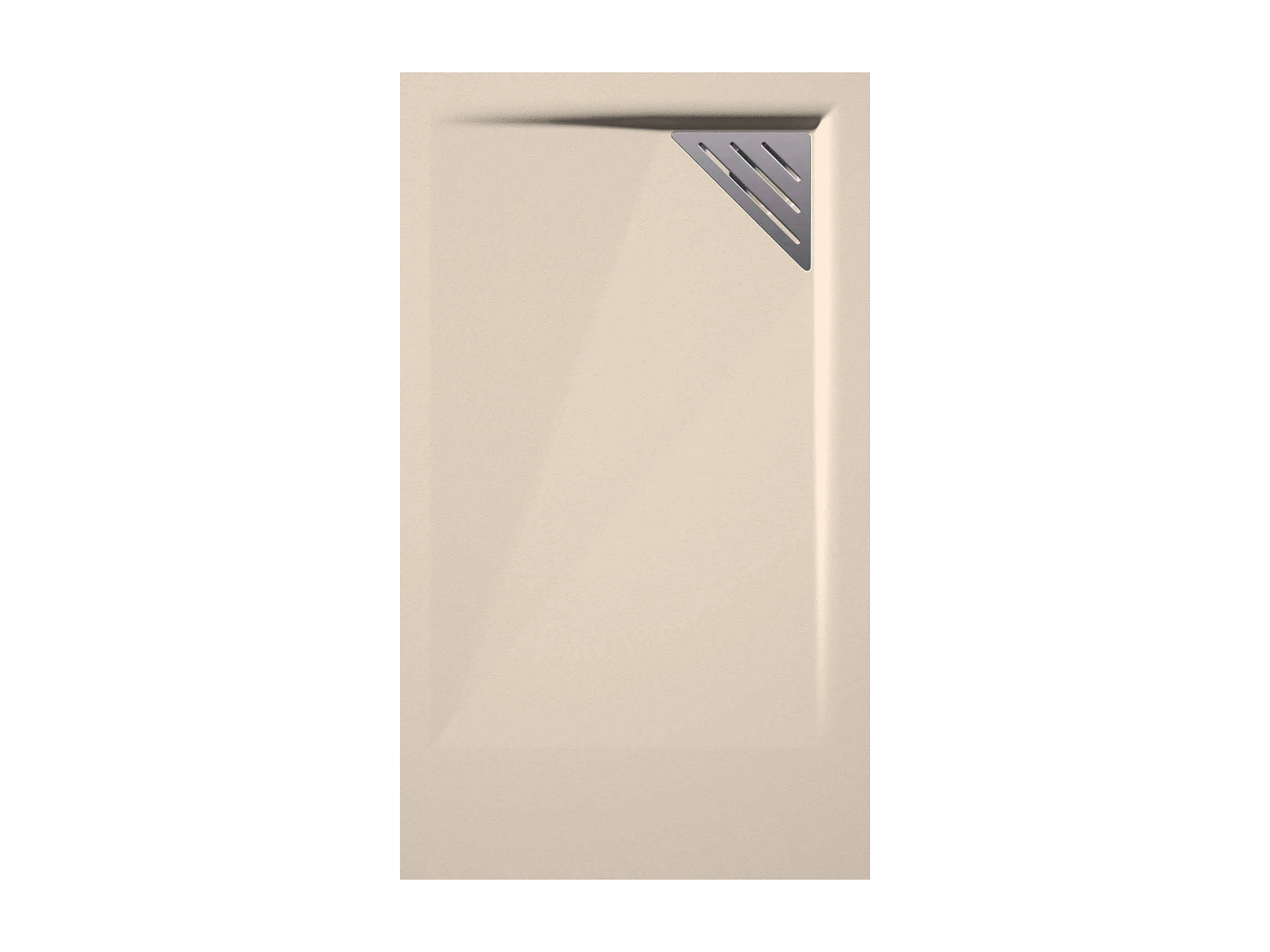Mineralguss-Duschwanne extra flach TRINITY in CREME 80x180 cm Ablaufschutz in Chrom