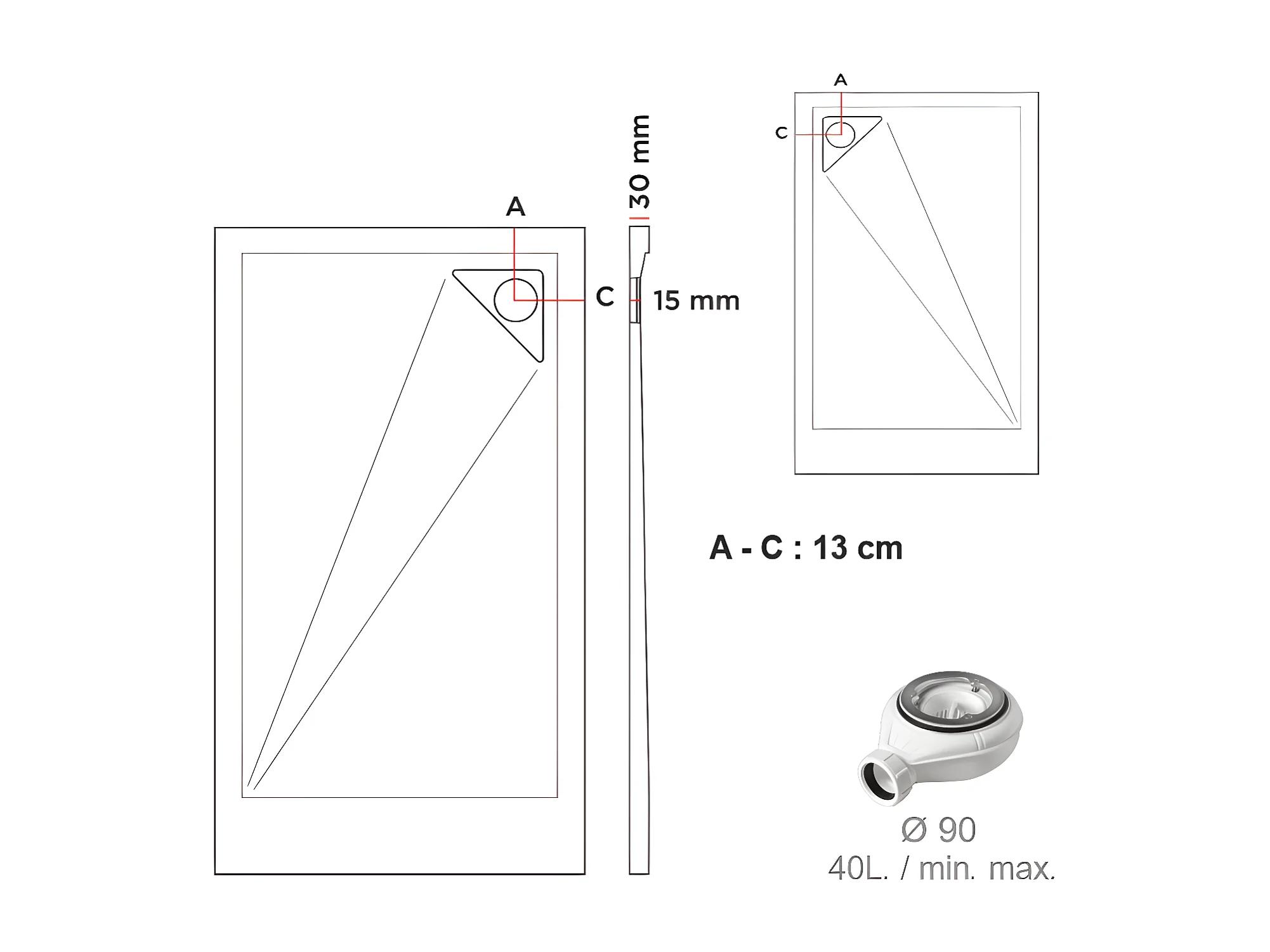 Mineralguss-Duschwanne extra flach TRINITY in CREME 90x170 cm Ablaufschutz in Chrom