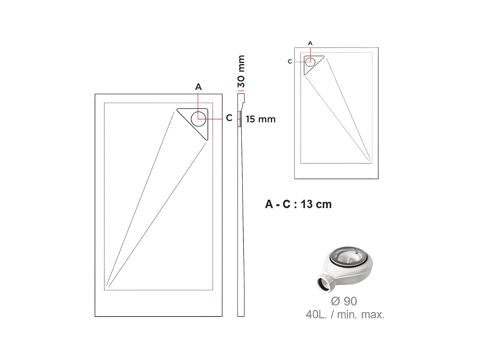 Mineralguss-Duschwanne extra flach TRINITY in WEIß 80x200 cm