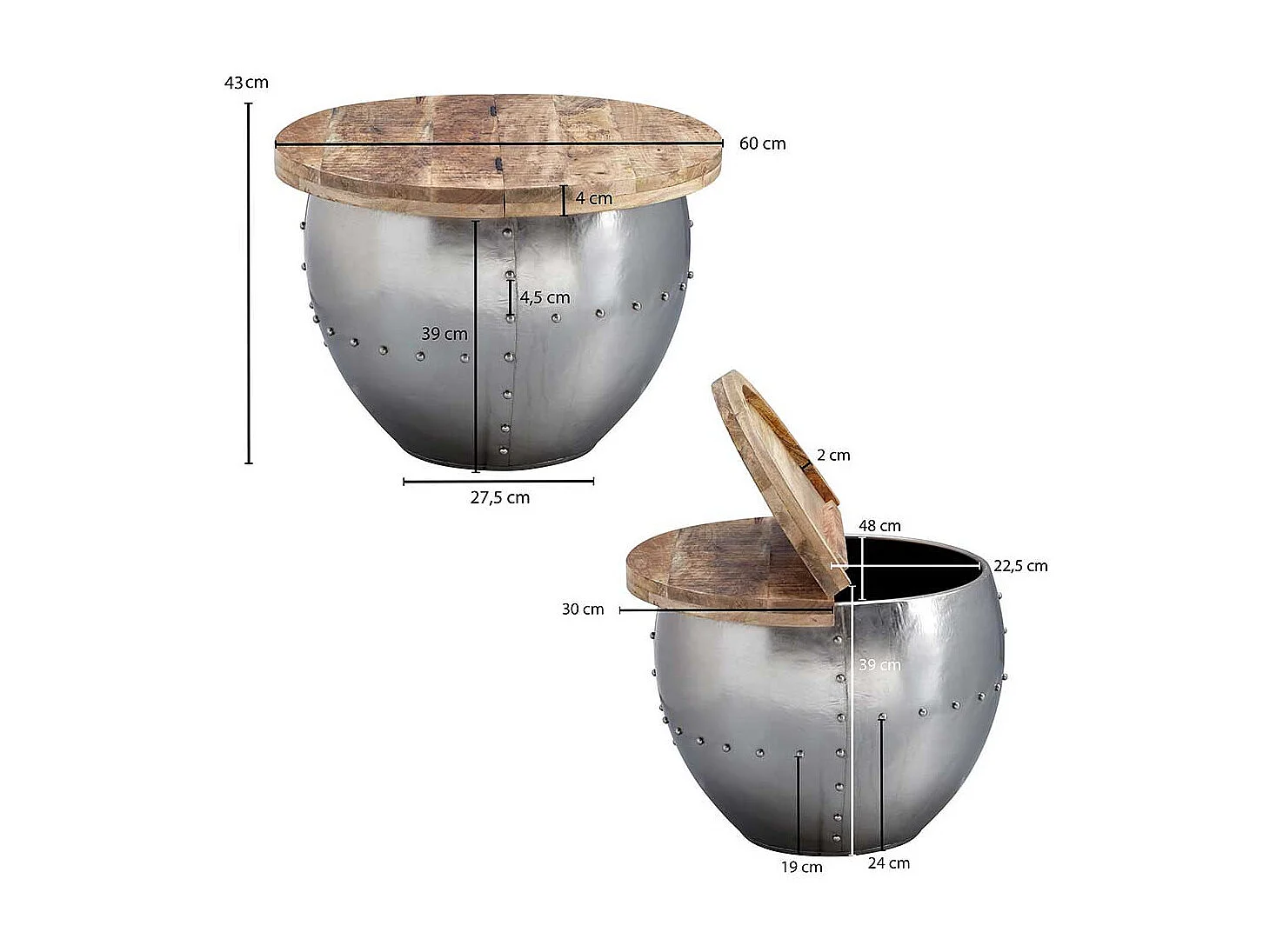 Factory Wohnzimmer Tisch mit Gestell in Trommelform Truhe