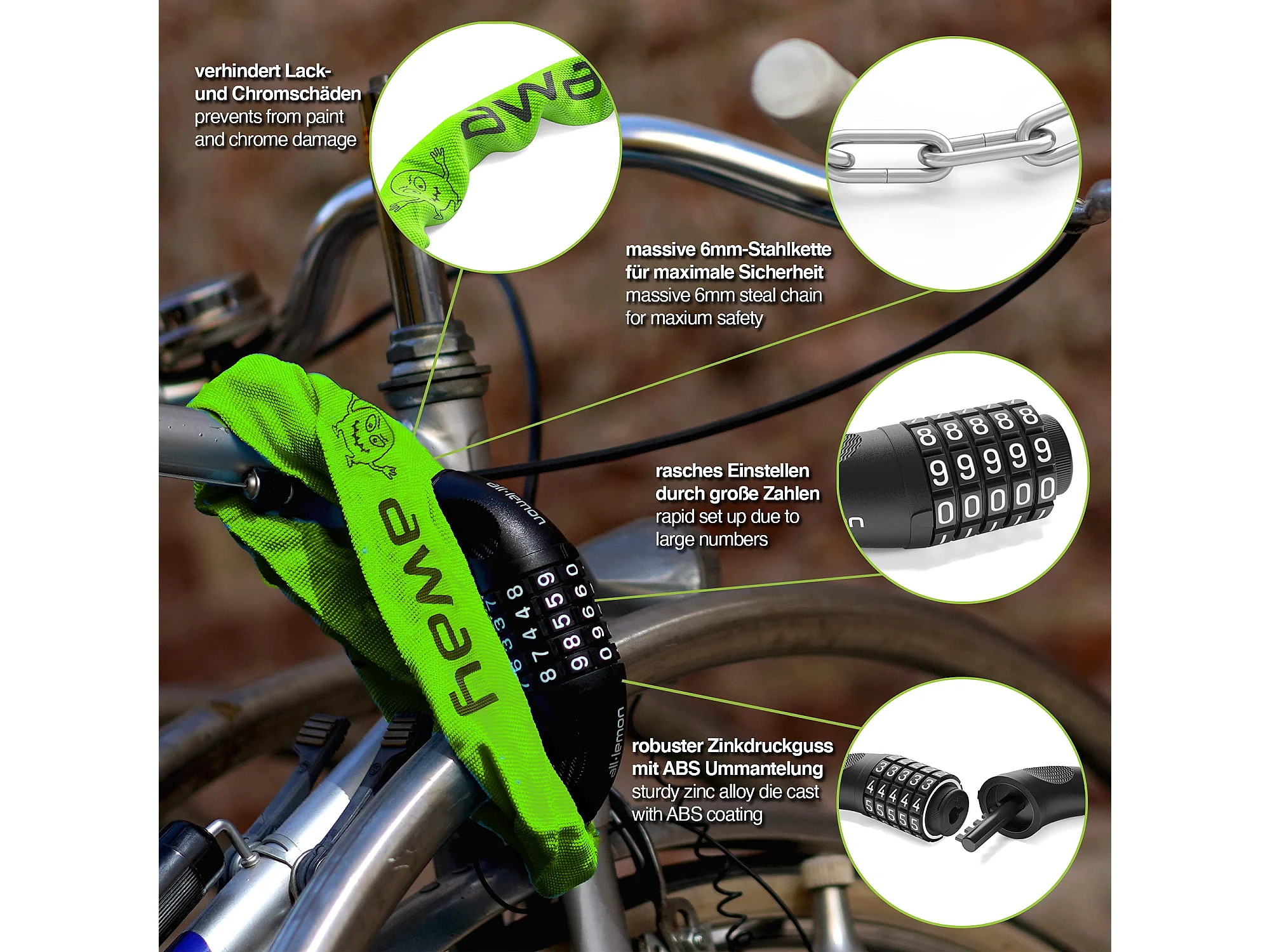 Fahrradschloss Radschloss mit Zahlencode,