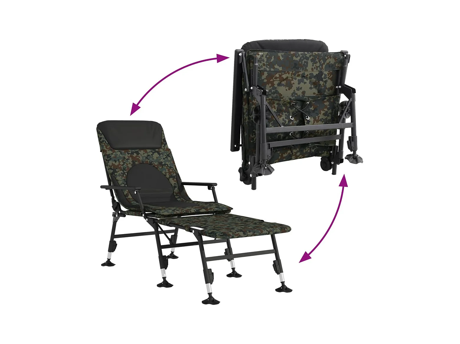 Faltbare Angelliege in Tarnfarben mit verstellbaren Schlammbeinen