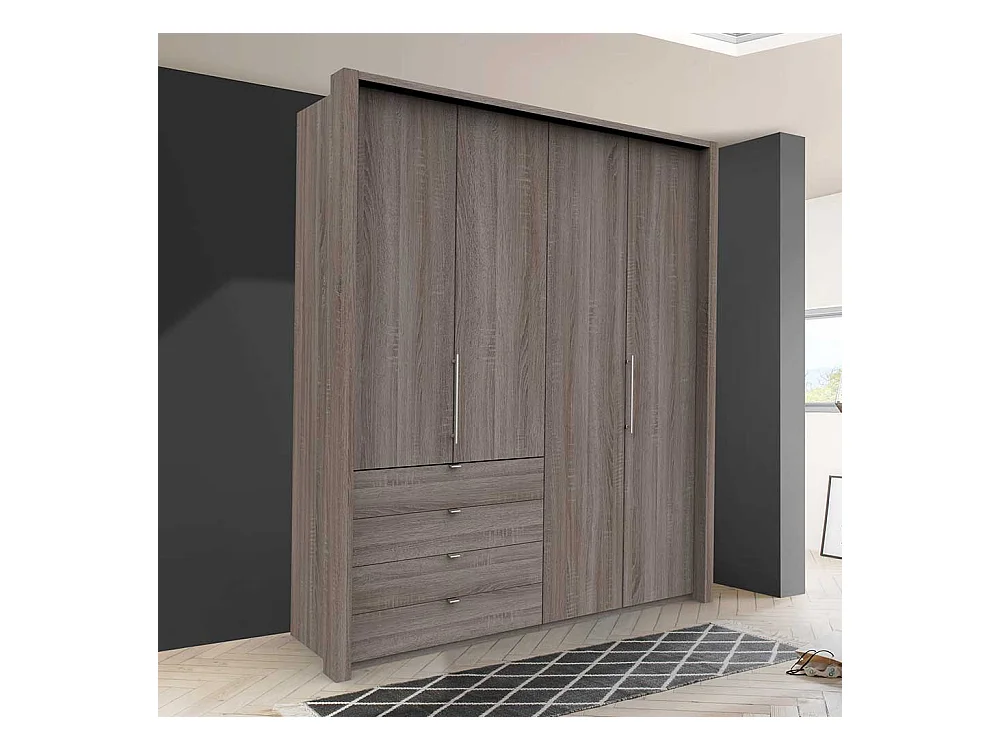 Falttüren Ankleideschrank in Eiche Trüffelfarben 2 türig mit Schubladen