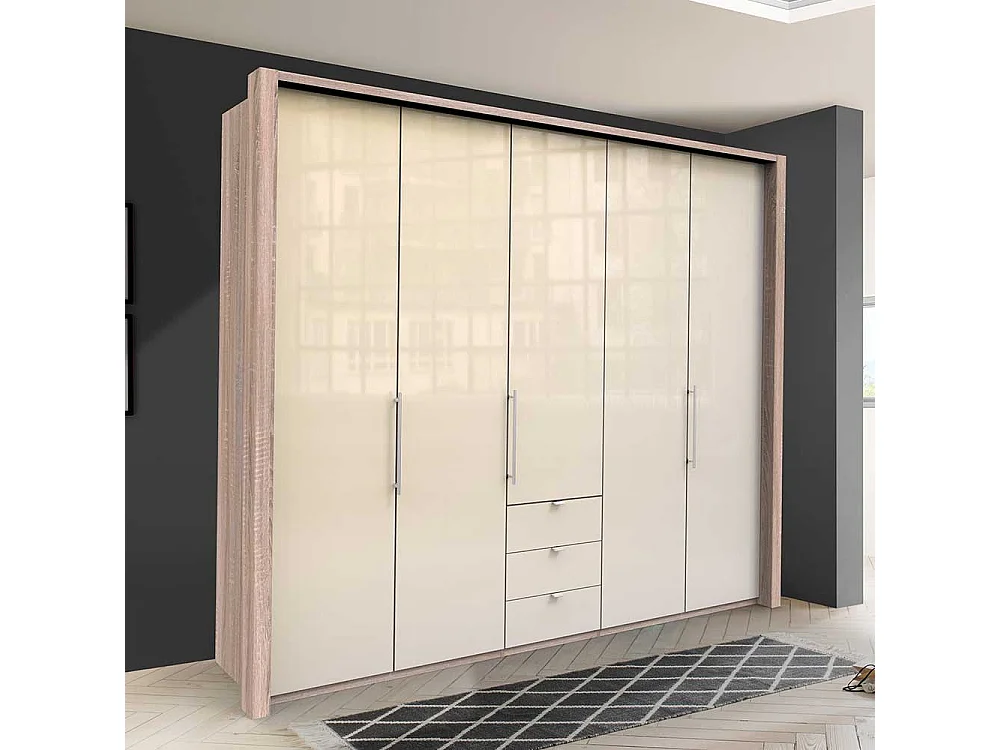 Falttüren Kleiderschrank in Cremefarben Eiche Sägerau
