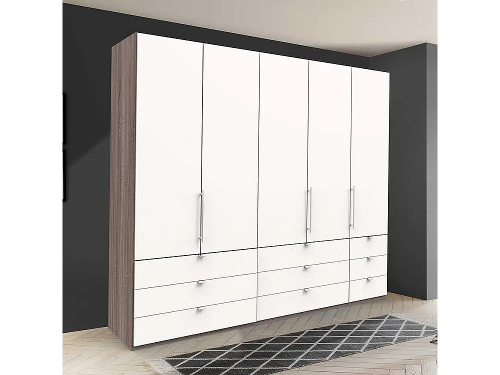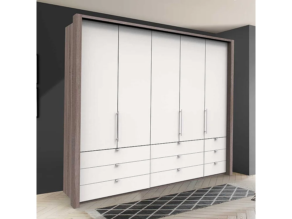 Falttüren Kleiderschrank in Weiß Eiche Trüffelfarben