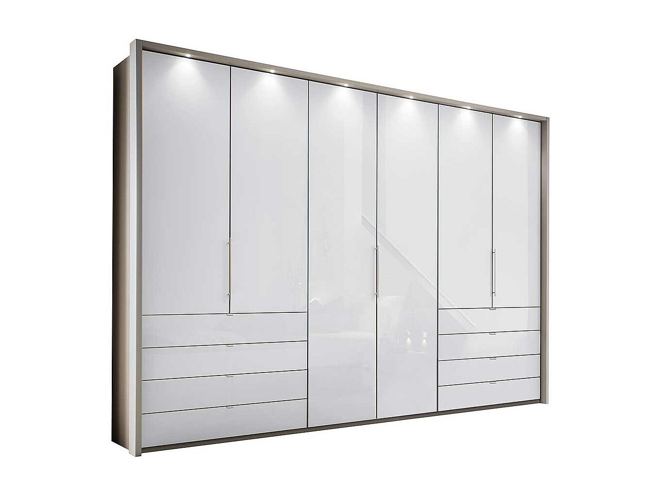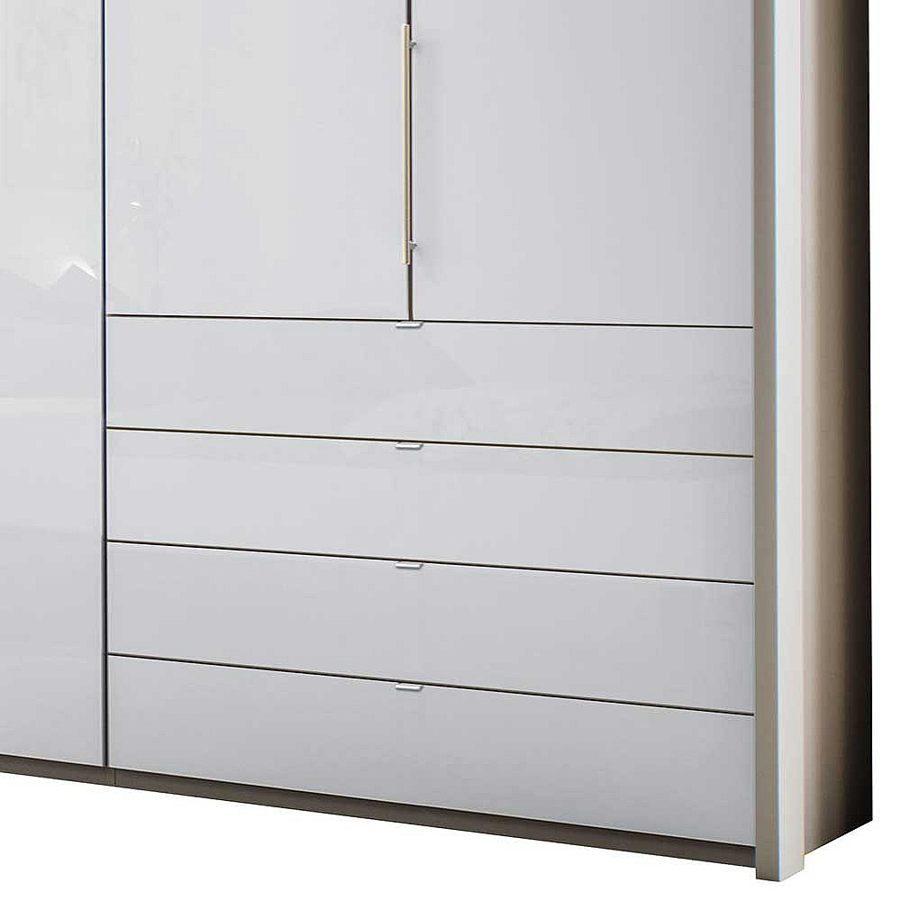 Falttüren Schlafzimmerschrank in Weiß und Hellgrau LED Beleuchtung