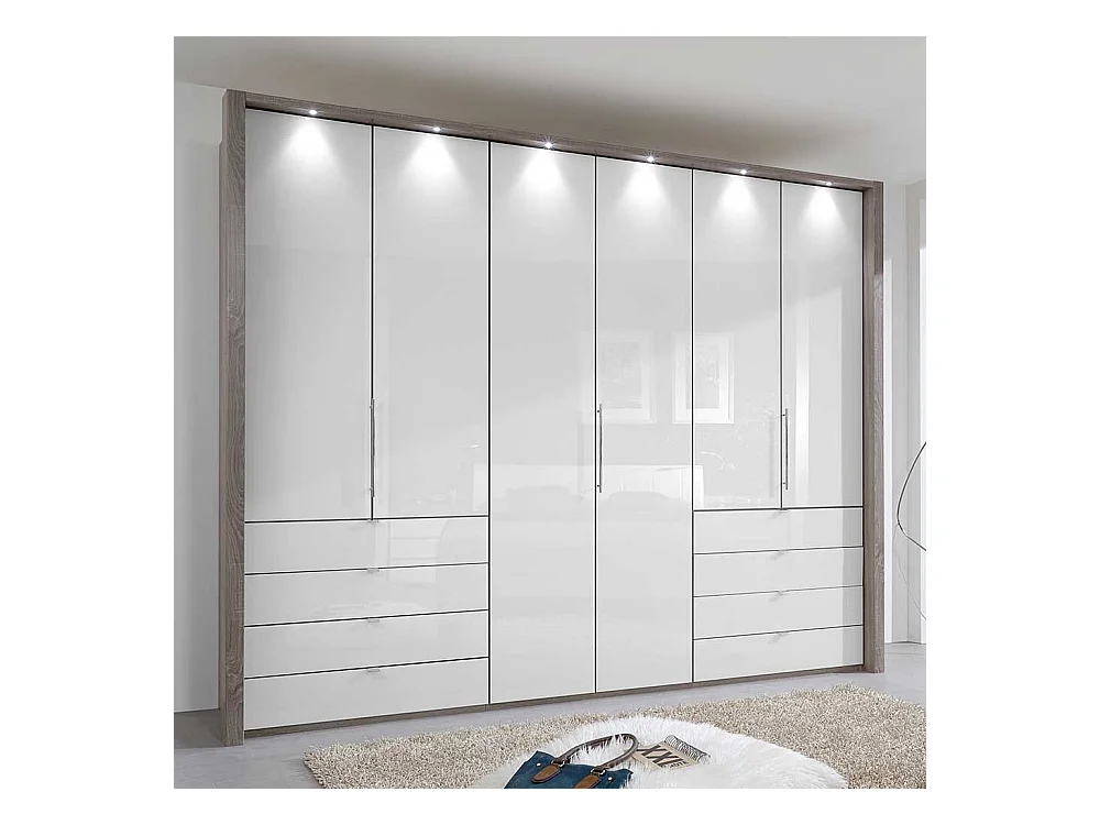 Falttüren Schlafzimmerschrank in Weiß und Trüffelfarben Made in Germany