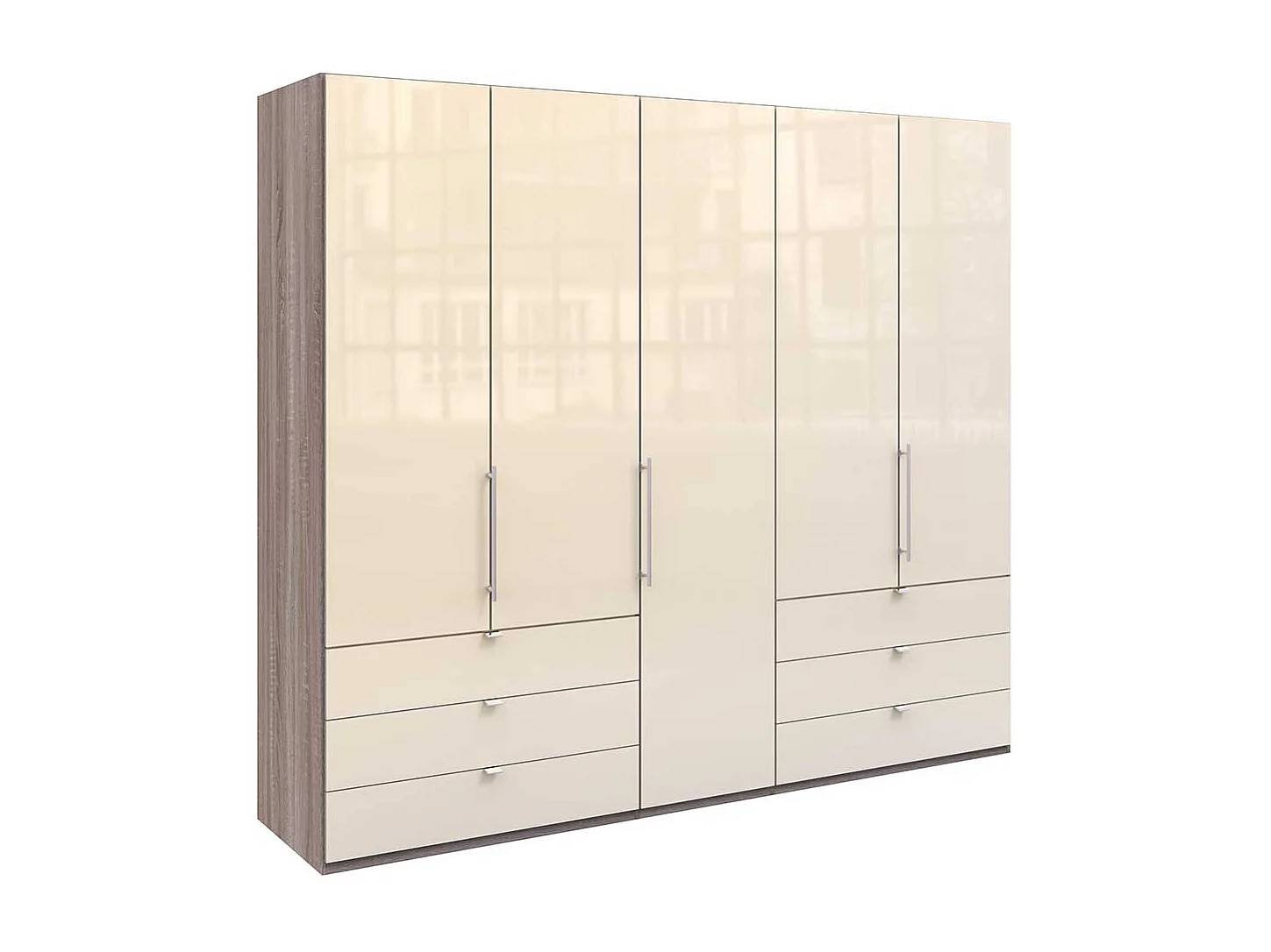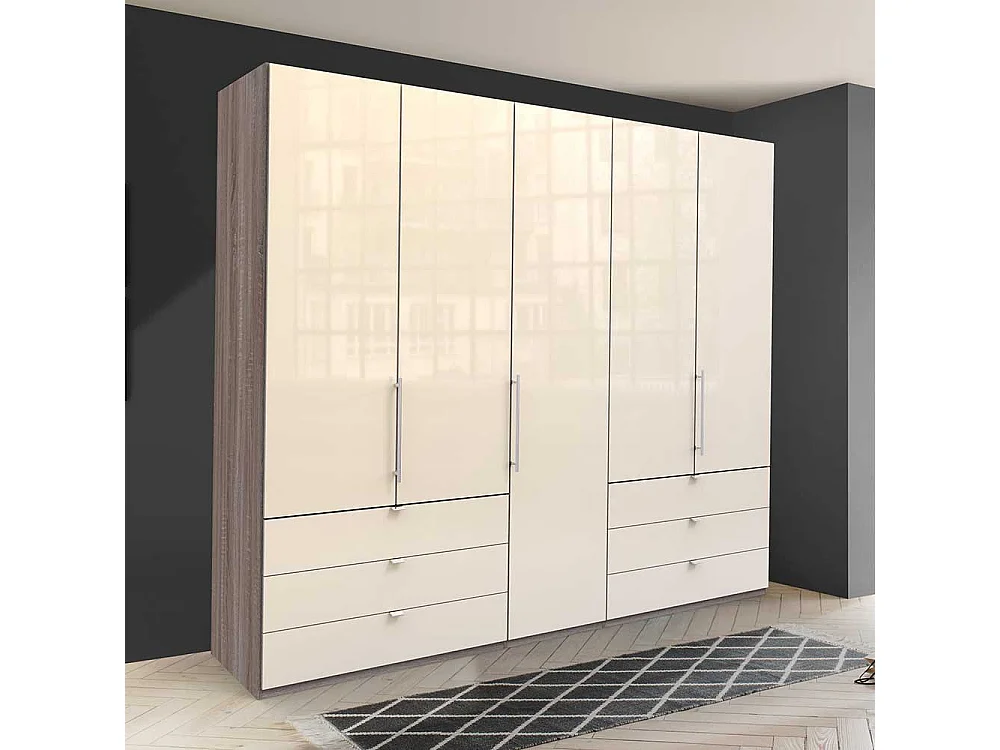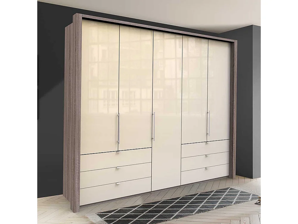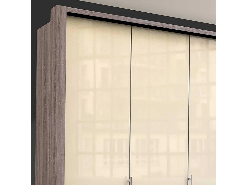 Falttüren Schrank in Cremeweiß Eiche Trüffelfarben
