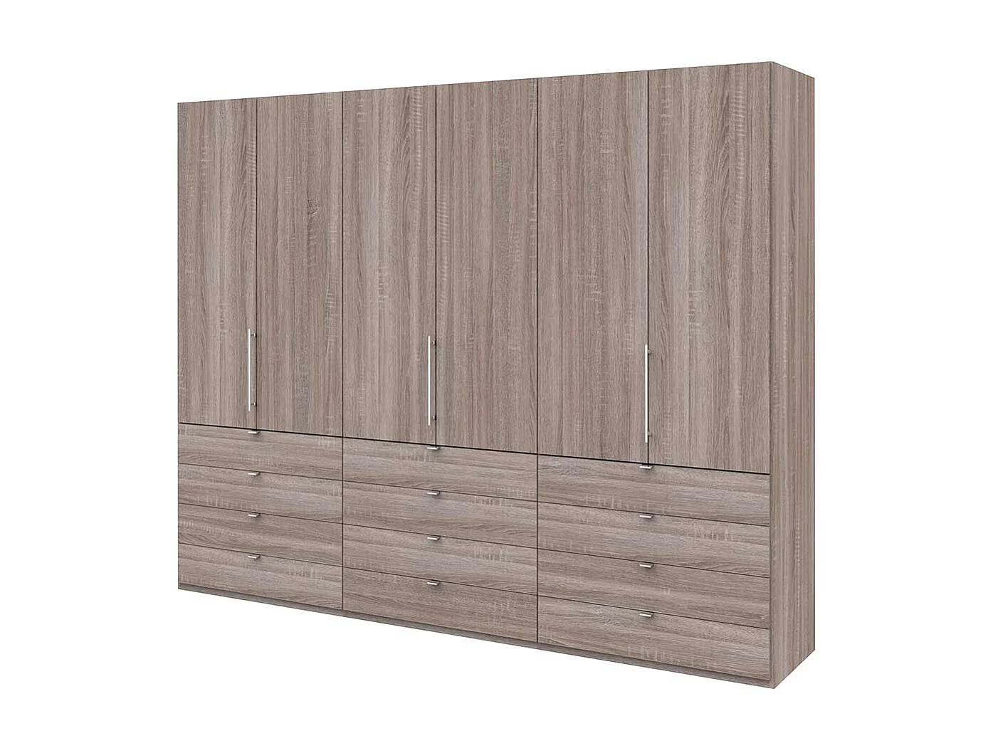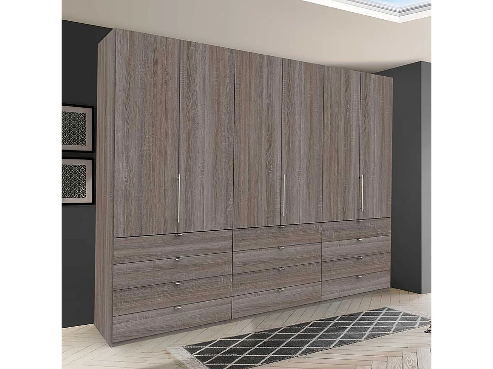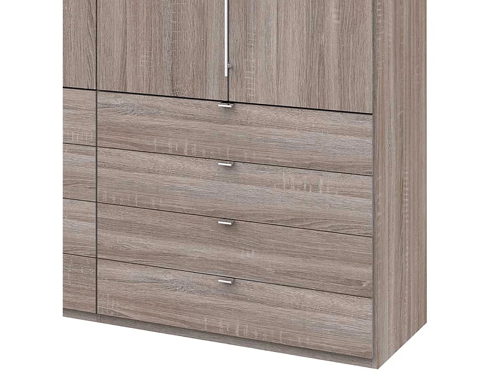 Falttüren Schrank in Eiche Trüffelfarben mit Schubladen