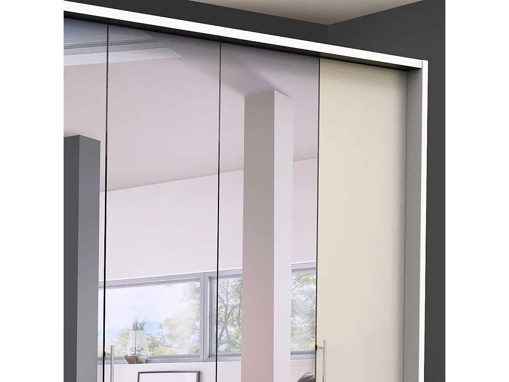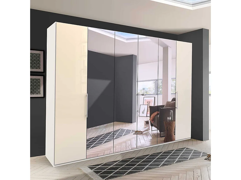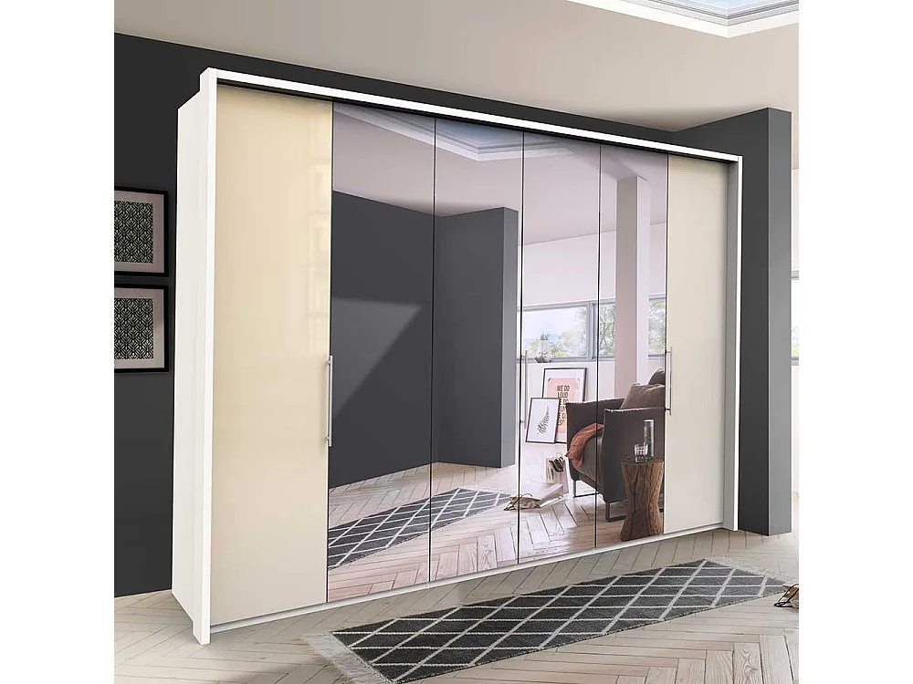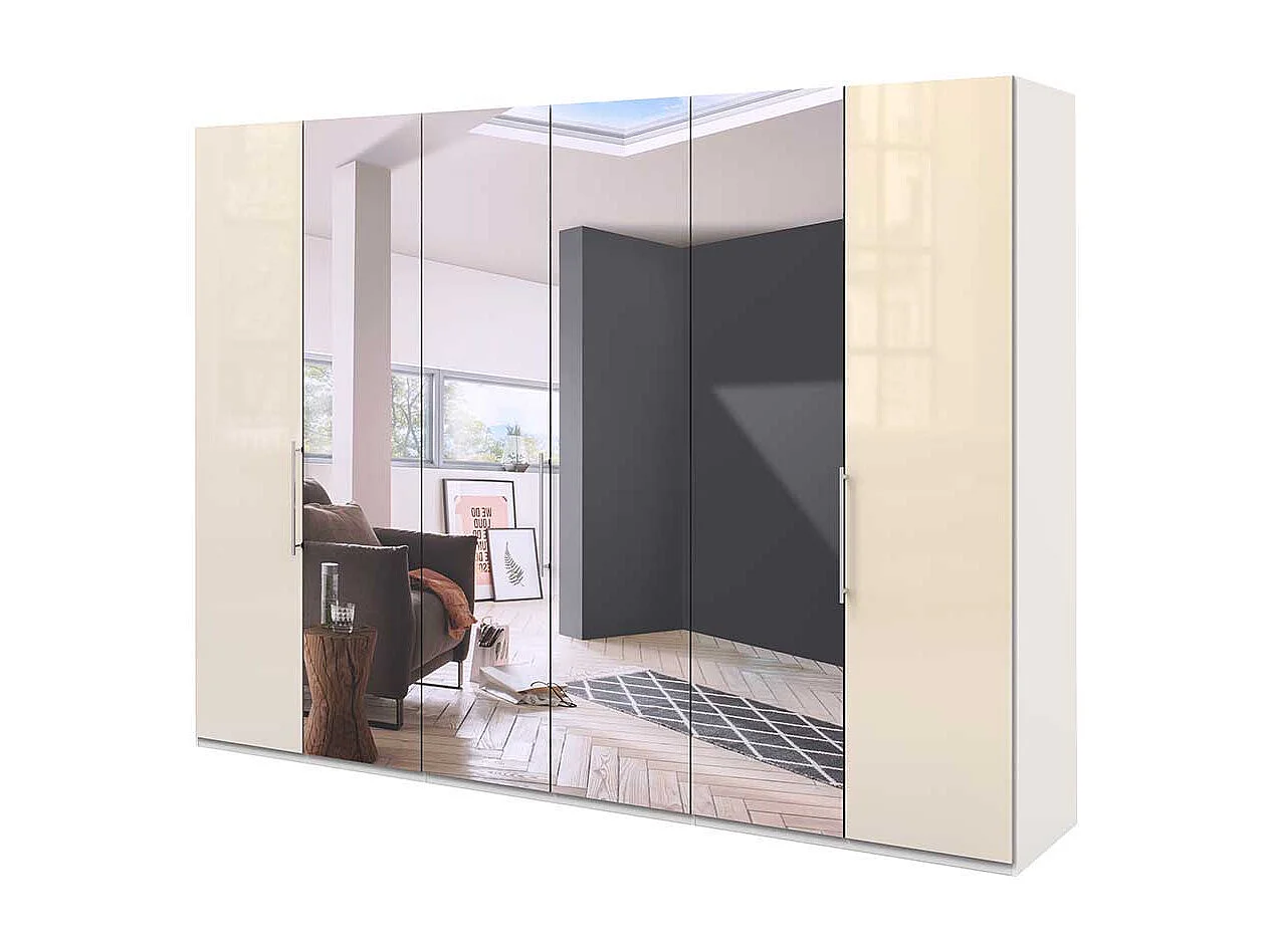Falttürenkleiderschrank mit Spiegel Cremefarben