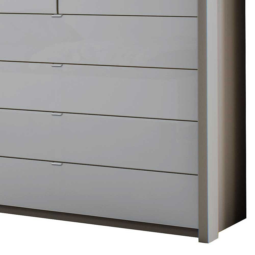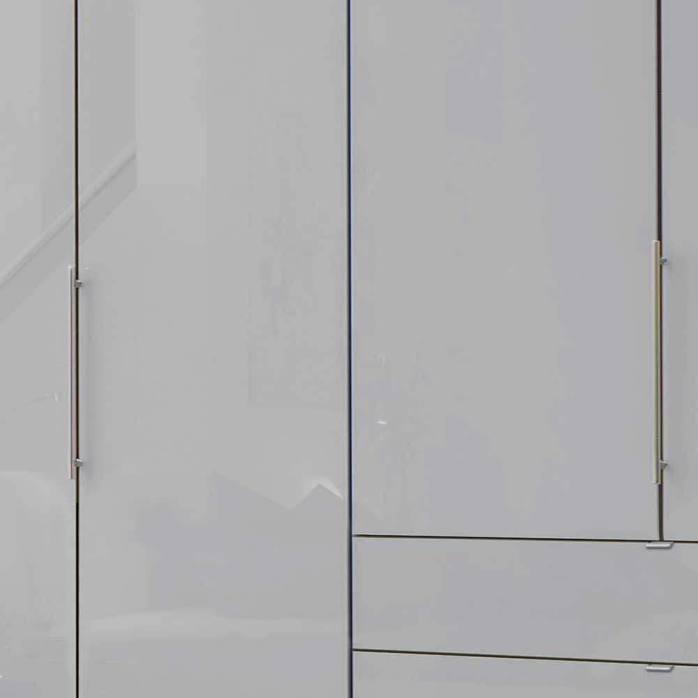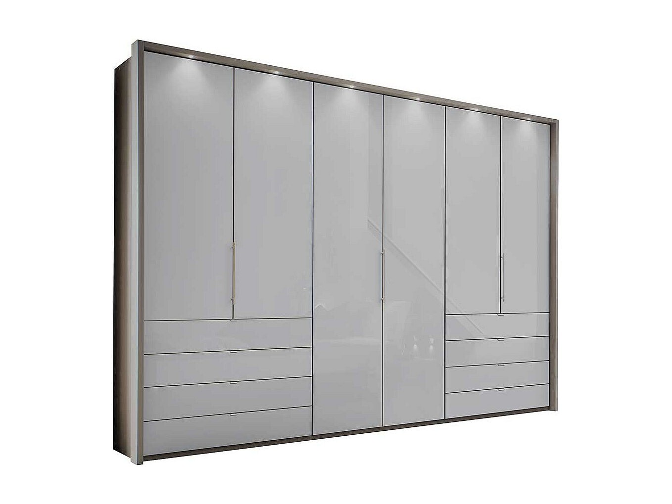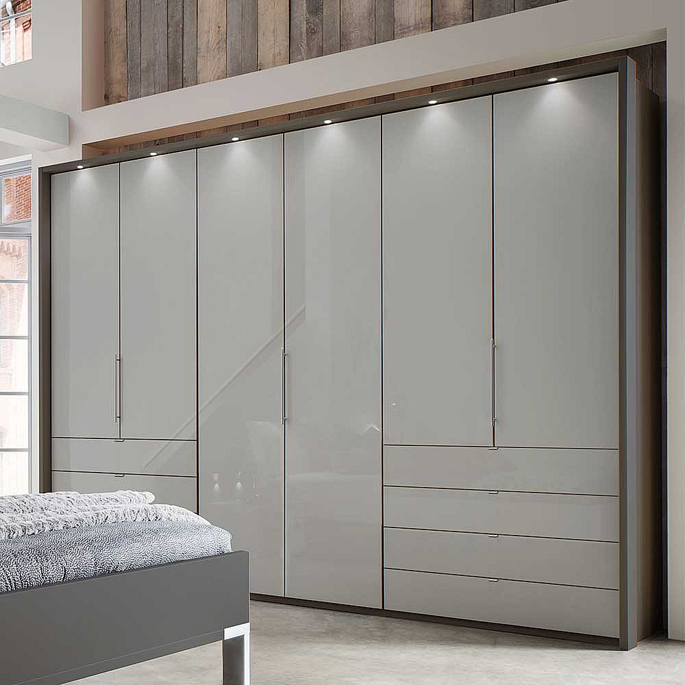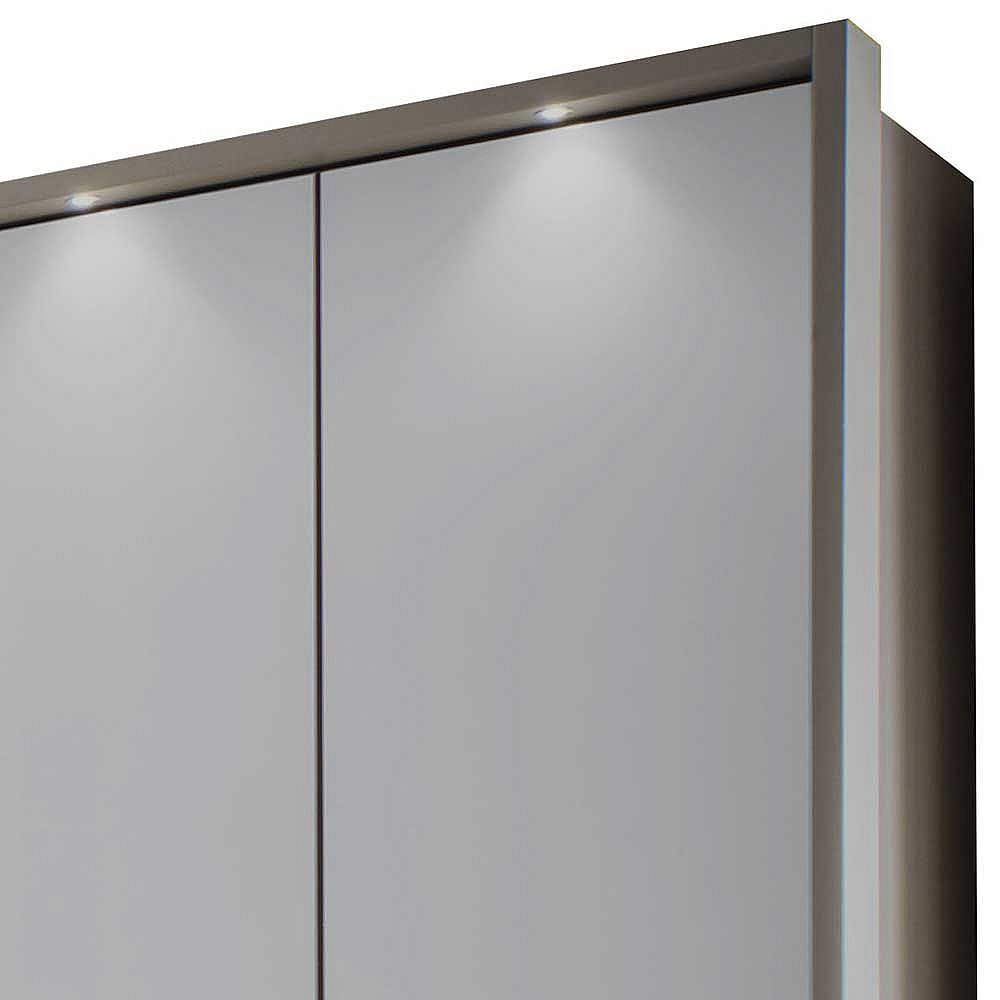Falttürenschrank in Hellgrau Glas beschichtet LED Beleuchtung