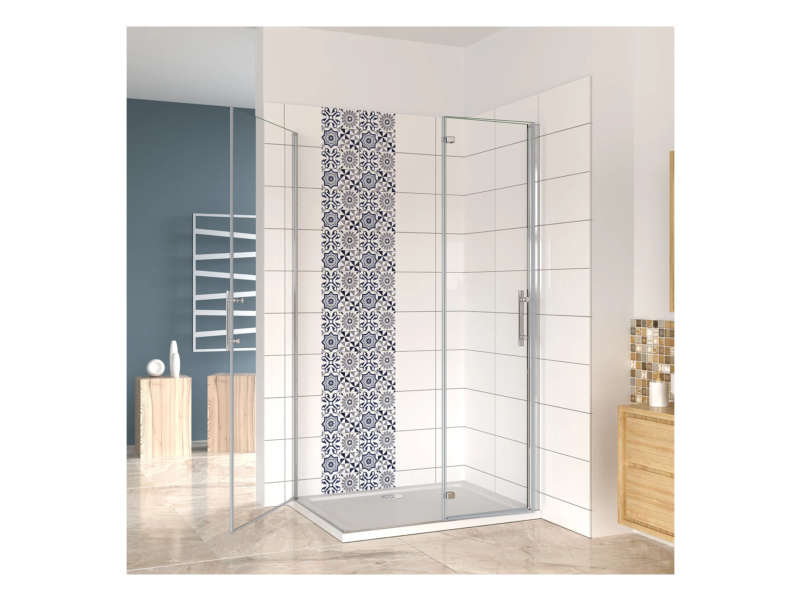 Falttür(80cm) x Drehtür(100cm) x Höhe 185cm Nano ESG Eckdukabine Duschabtrennung Eckdusche