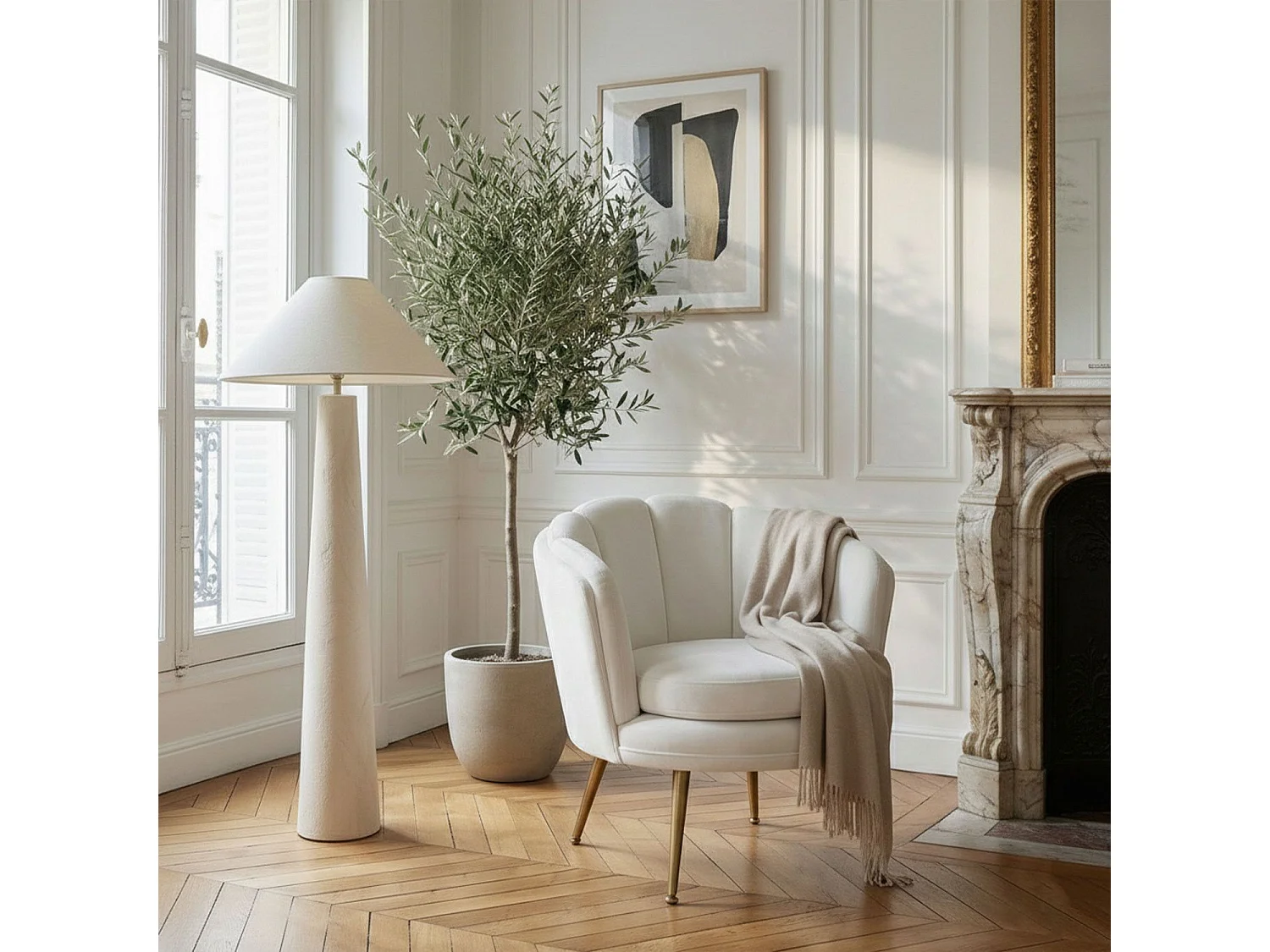 Runder Samt Sessel "Brenda" Weiß 80cm Modern und Bequem