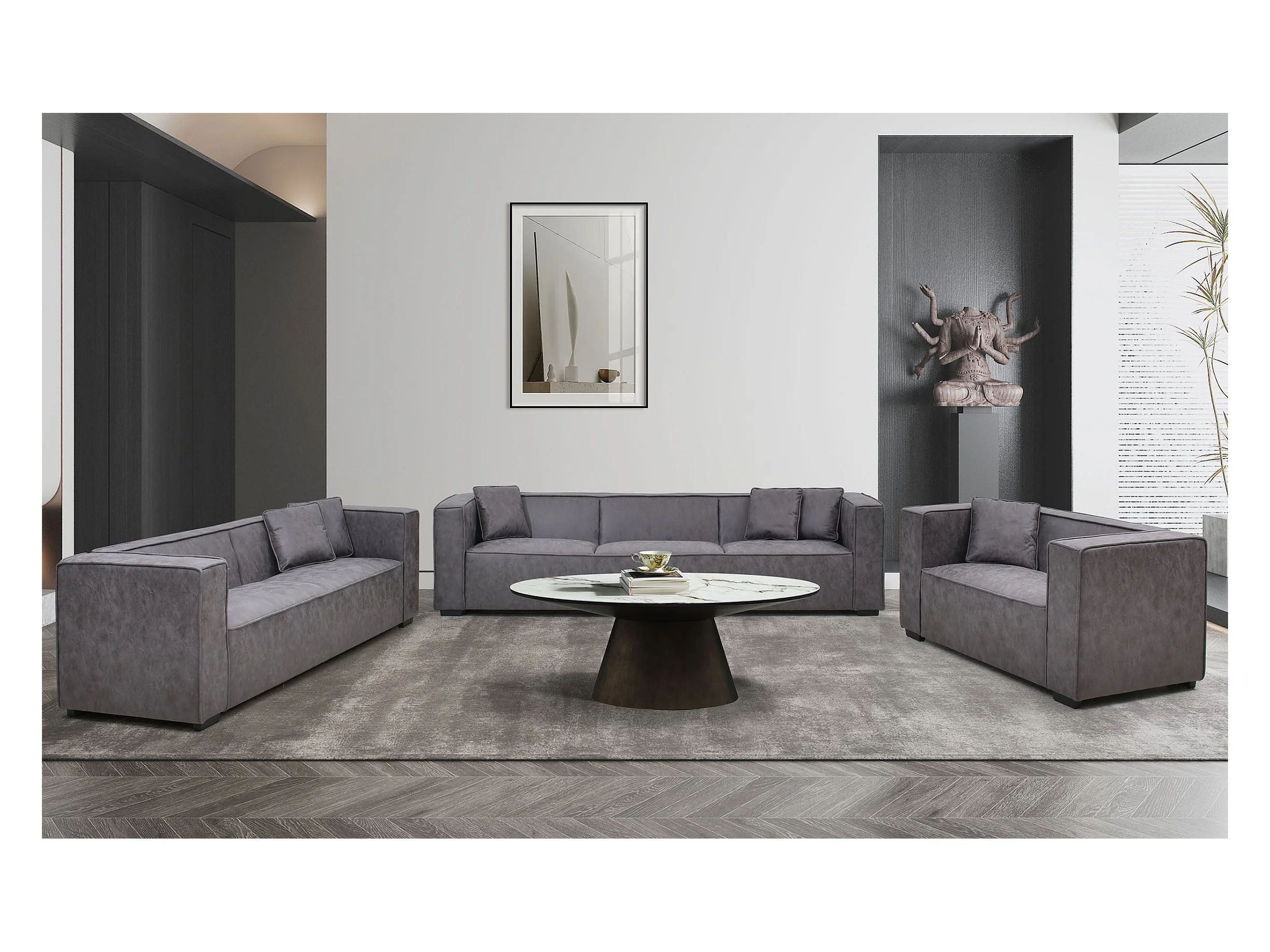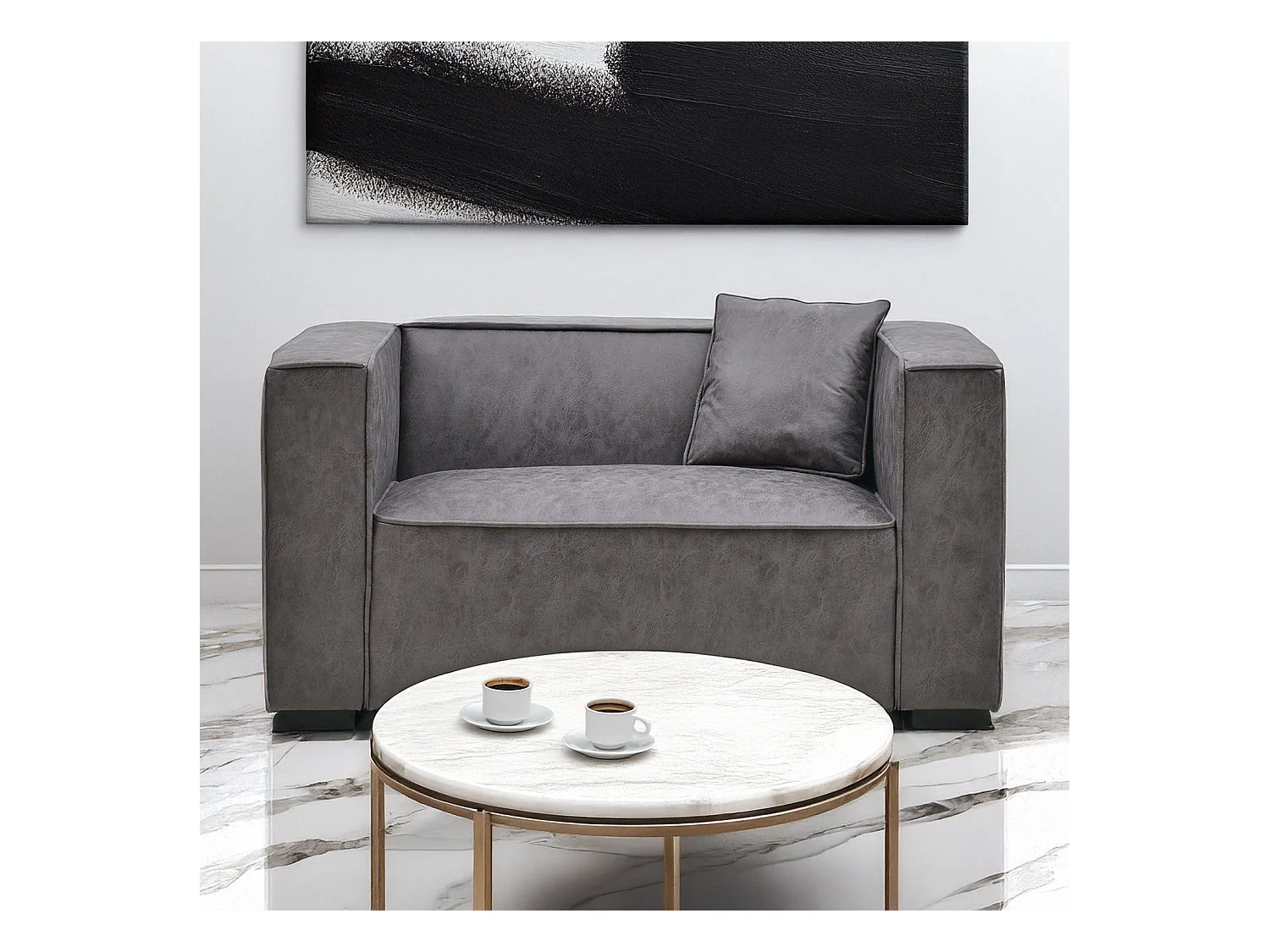 Fauteuil large Macao Tissu effet peau Vintage Gris