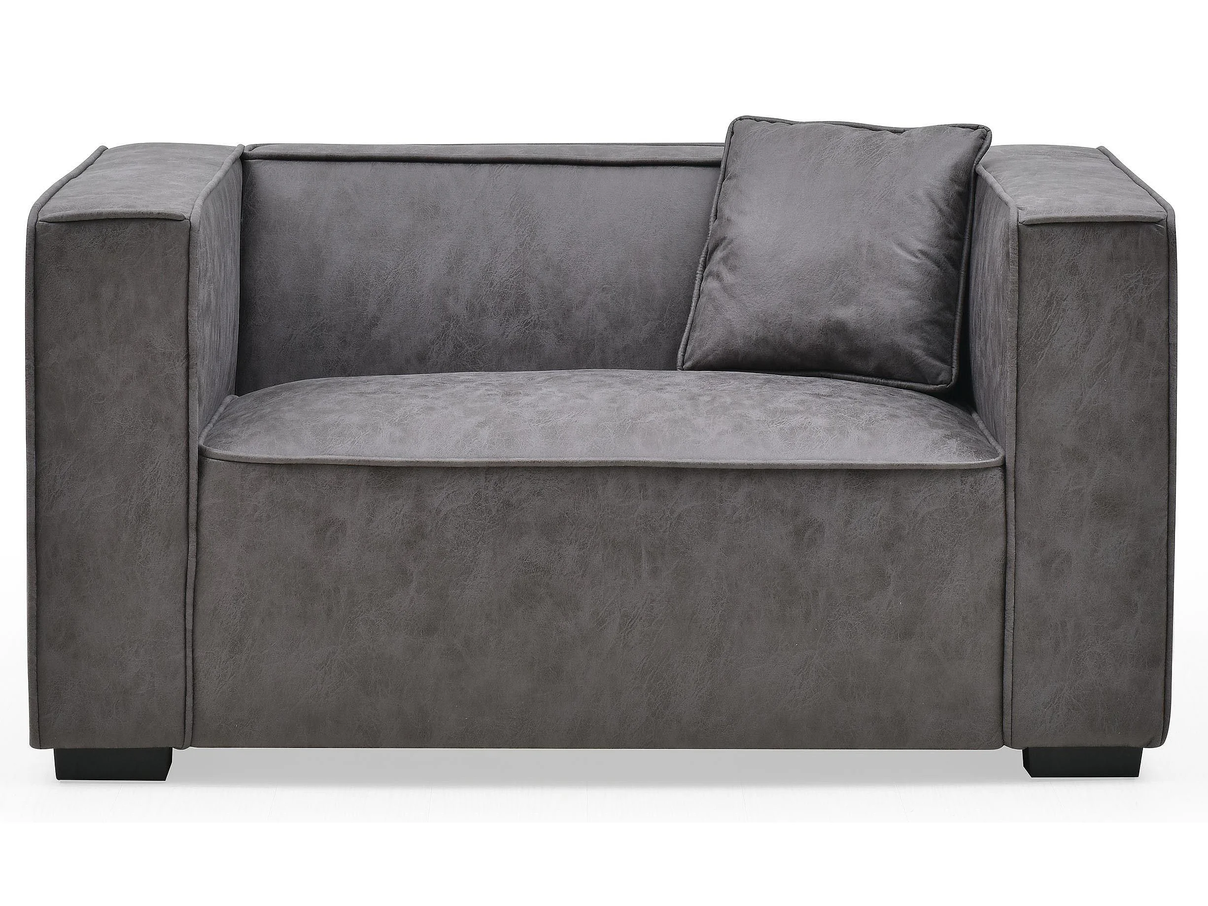 Breiter Macao Sessel in Vintage-Grau mit Lederoptik-Stoff, schlichtes und komfortables Design für zeitgenössisches Wohnzimmer
