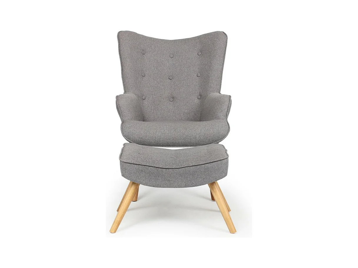 Fauteuil scandinave + pouf Lylou Tissu Gris clair