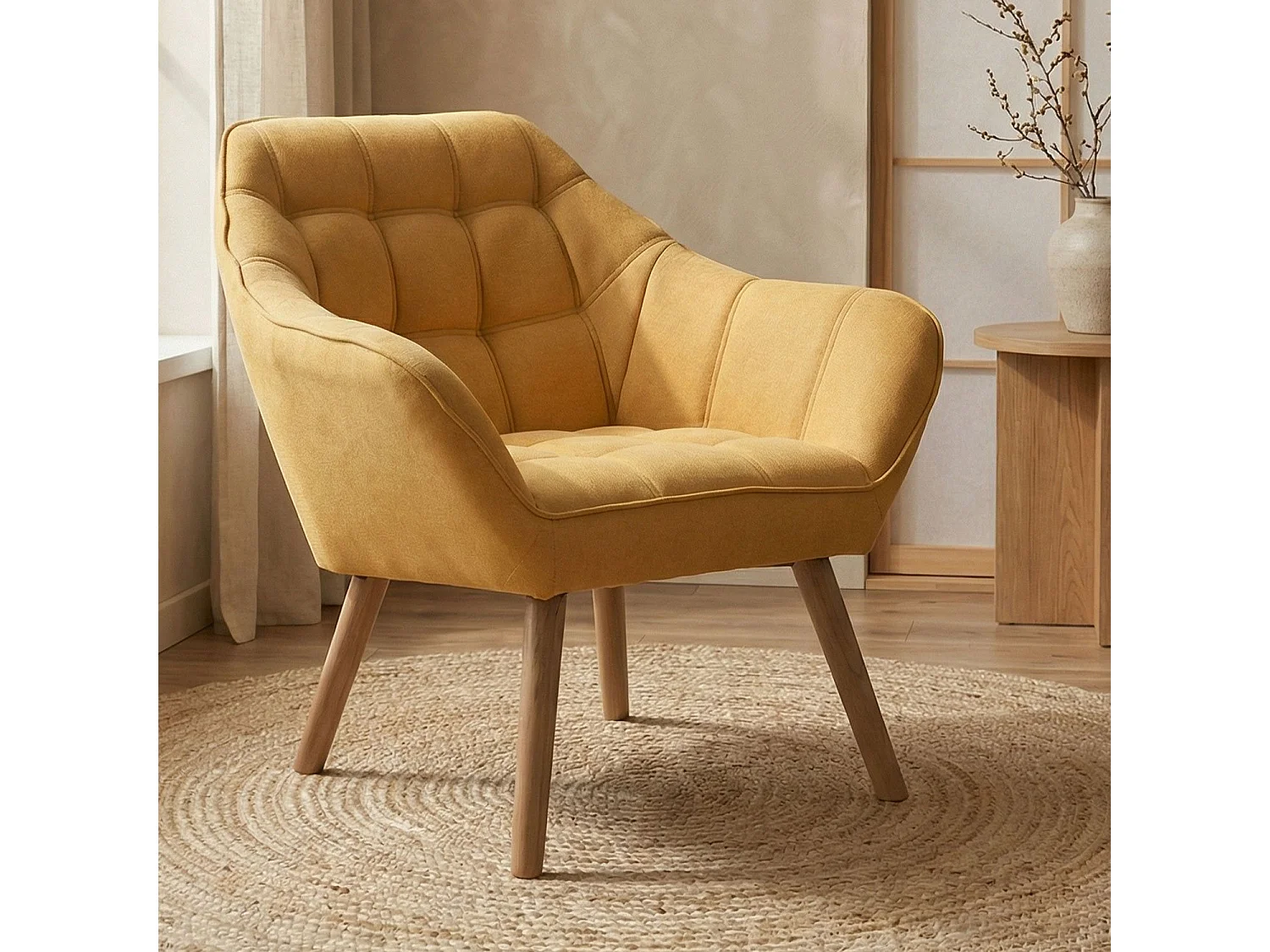 Fauteuil Scandinave Zentao Tissu Jaune