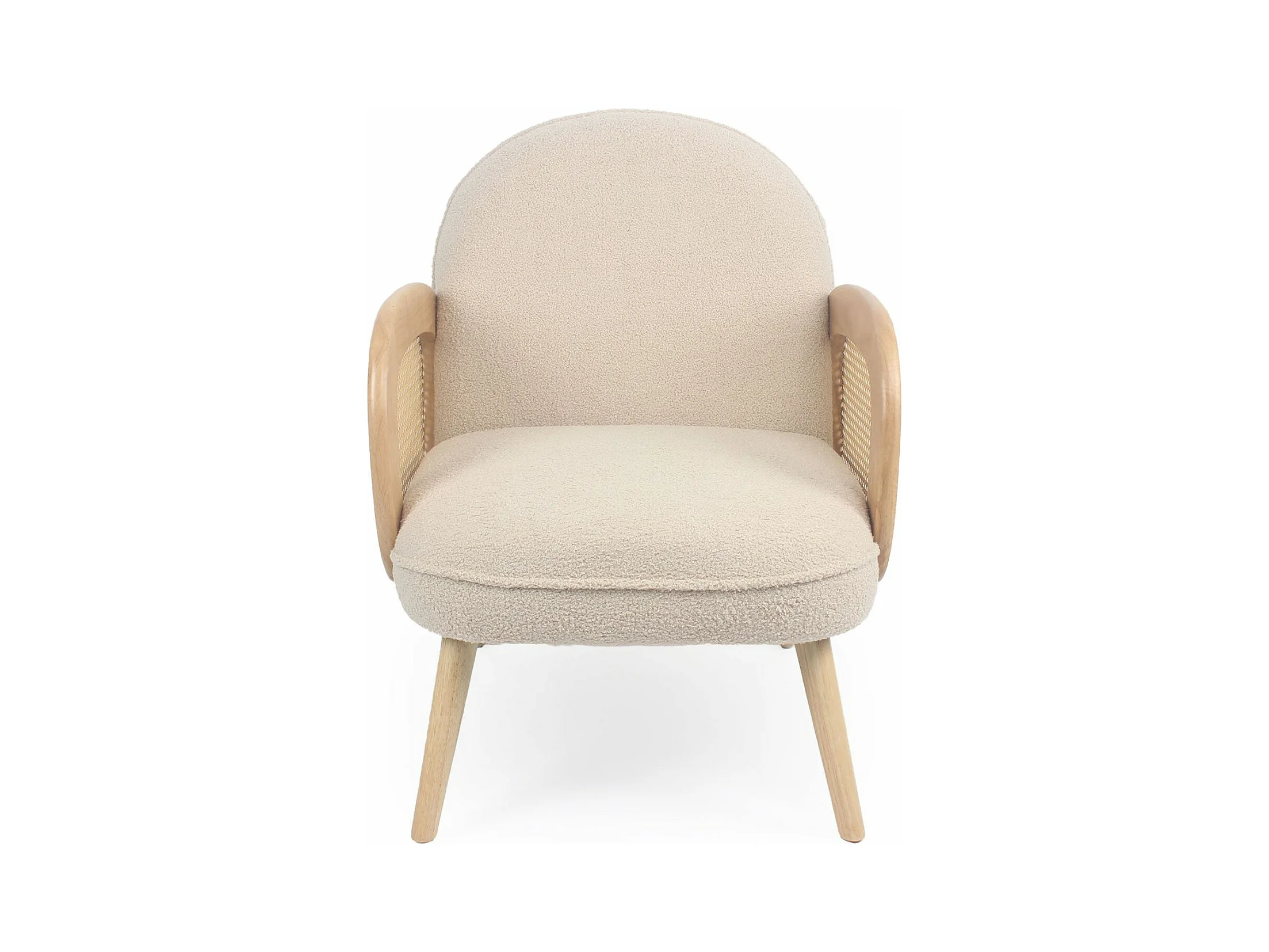 Fauteuil style bohème Rondou accoudoirs cannage et Tissu bouclette Beige