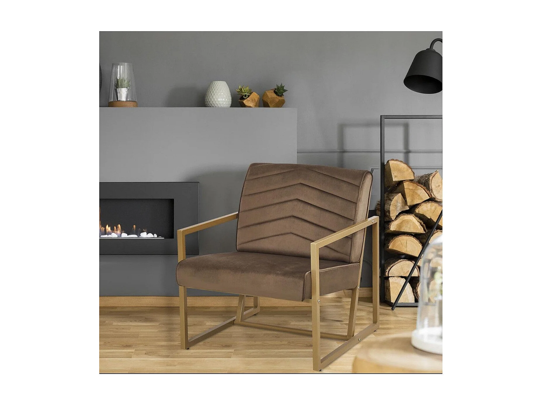 Fauteuil Vidor Velours Camel pieds Or