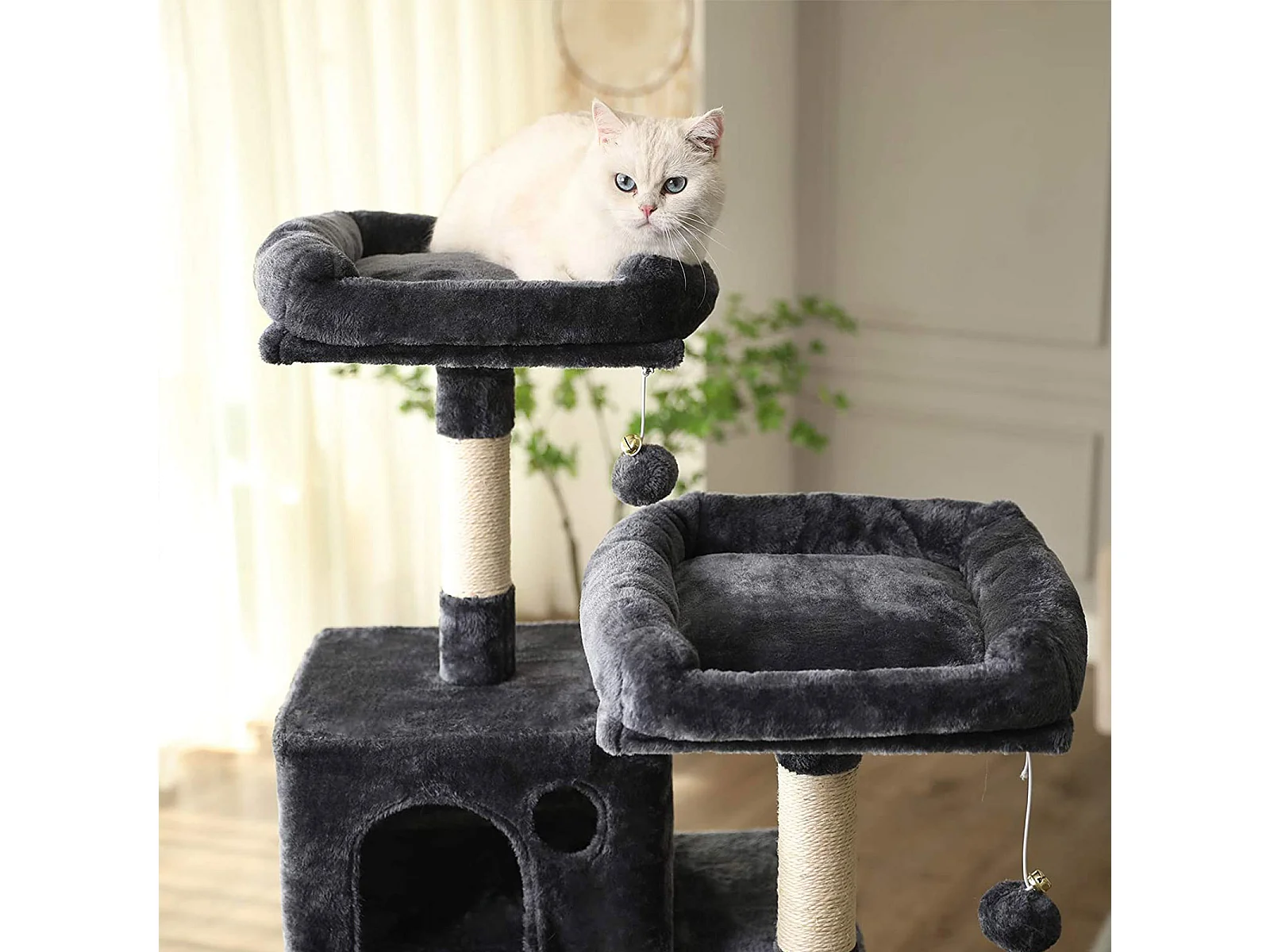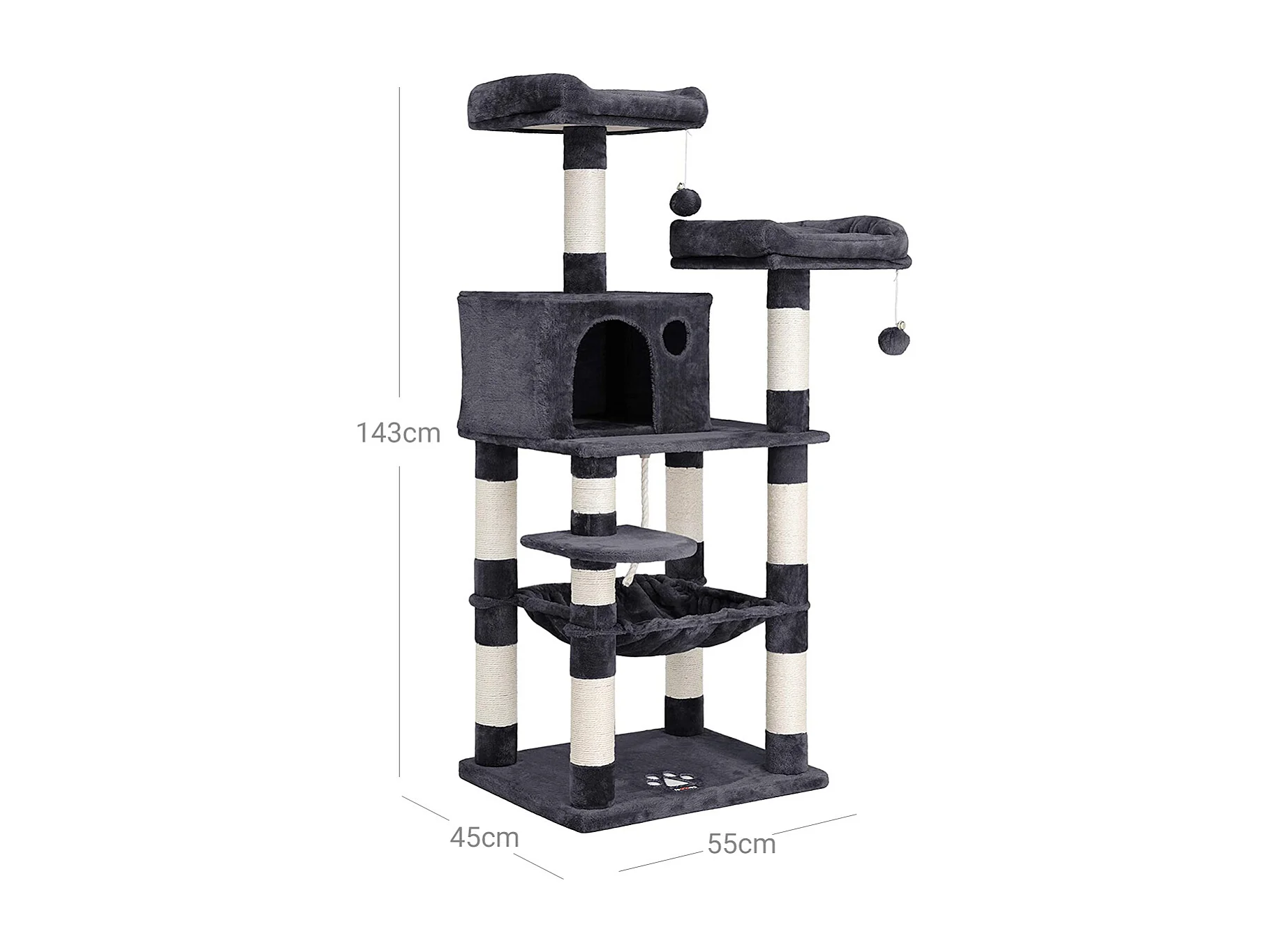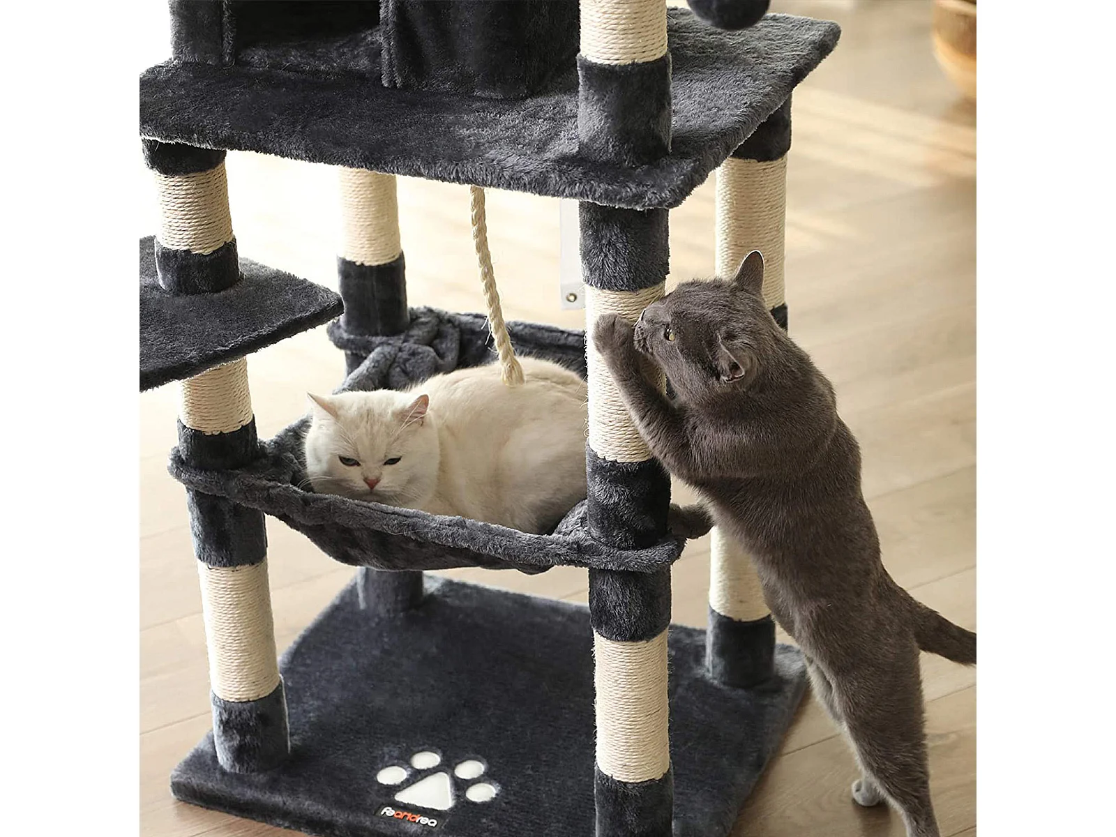 FEANDREA Kratzbaum, stabiler Katzenturm, 2 Plüschsitzstangen, 143cm, rauchgrau PCT15GYZ