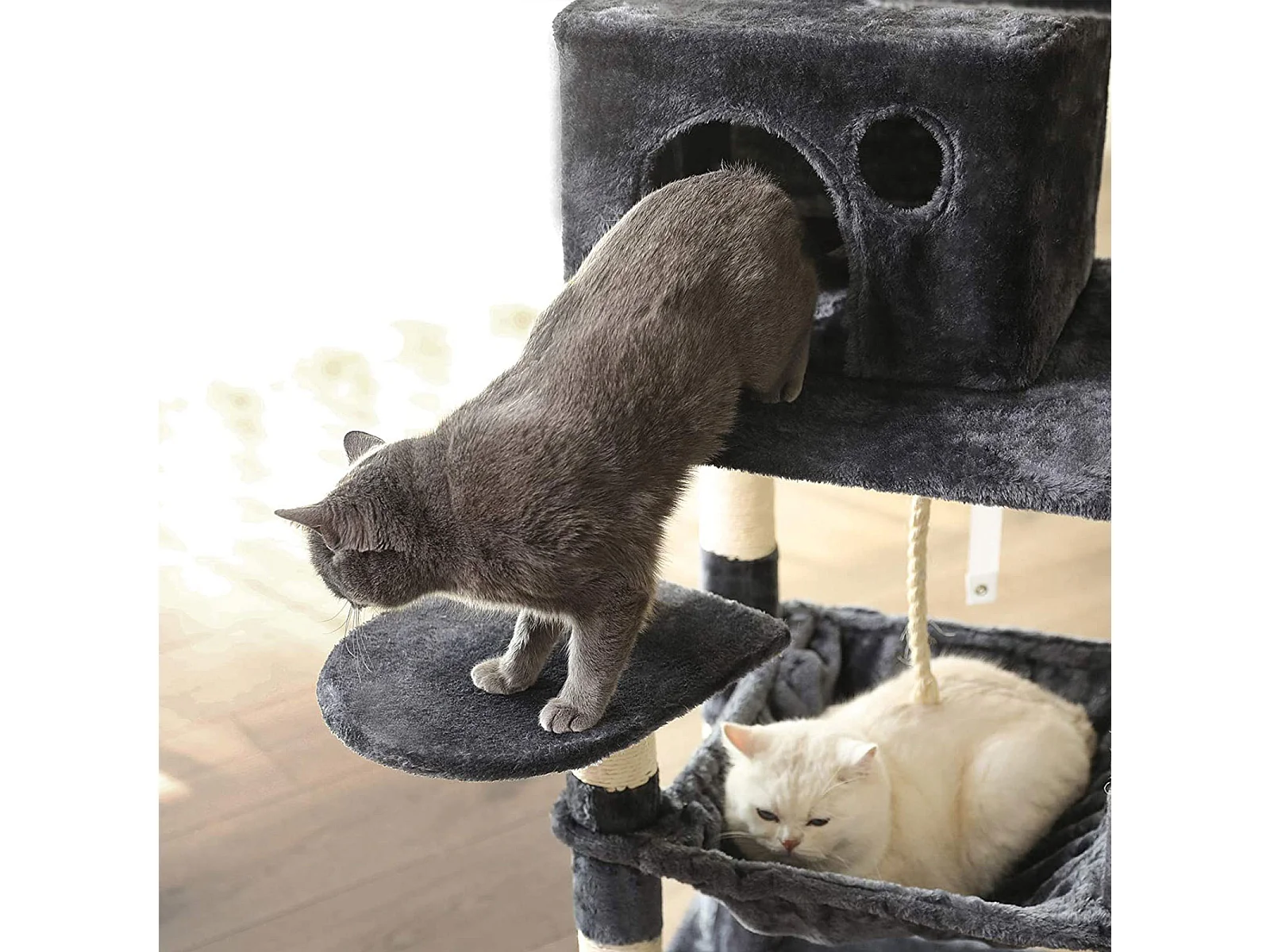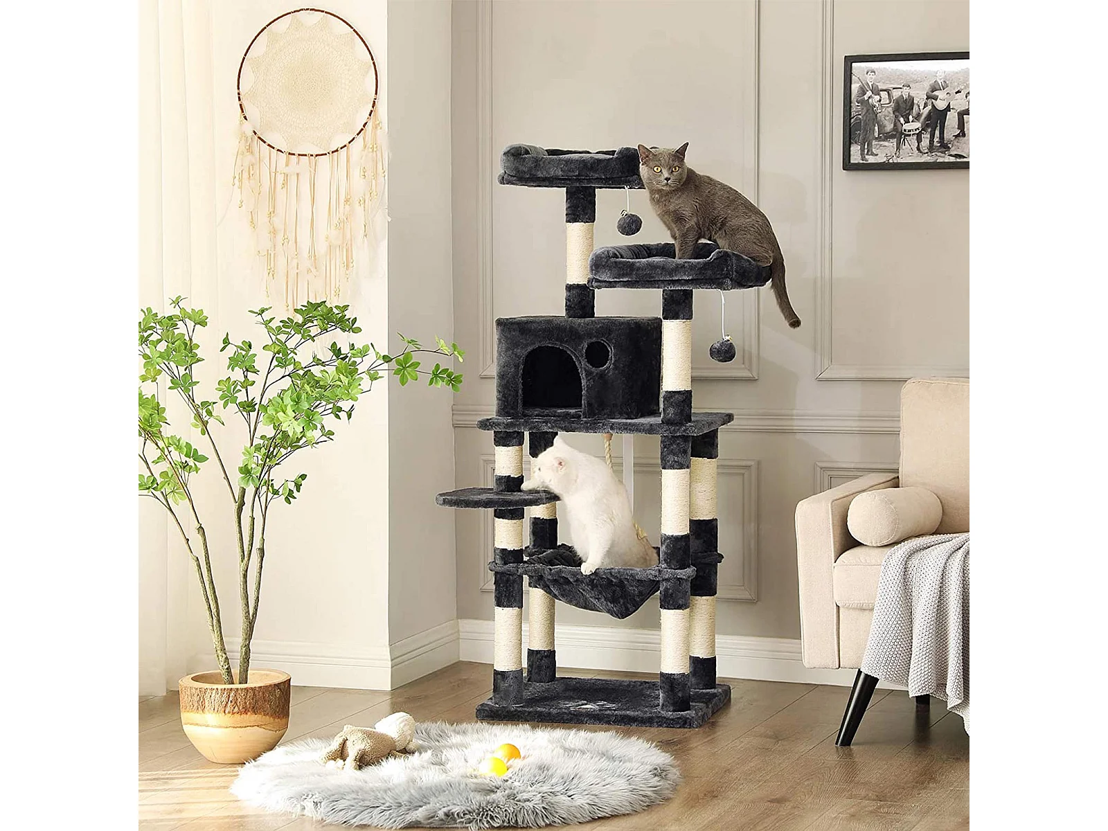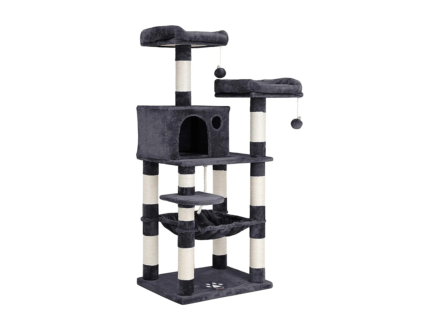 FEANDREA Kratzbaum, stabiler Katzenturm, 2 Plüschsitzstangen, 143cm, rauchgrau PCT15GYZ