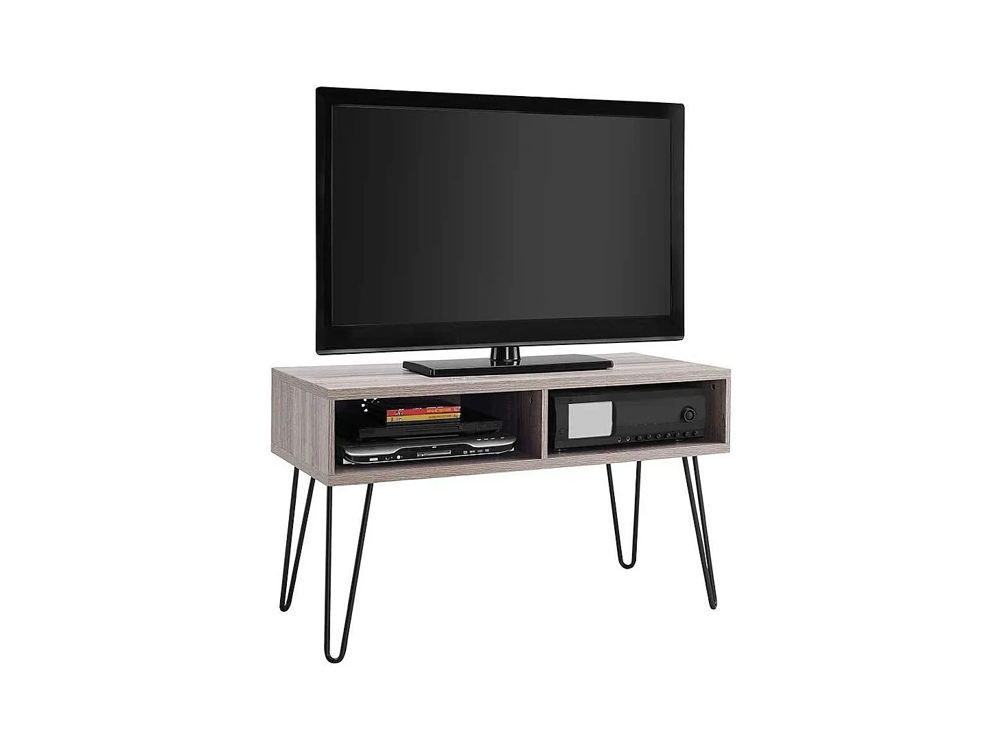 Fernseher Tisch in Eiche Grau Holzoptik Metall Hairpin Gestell