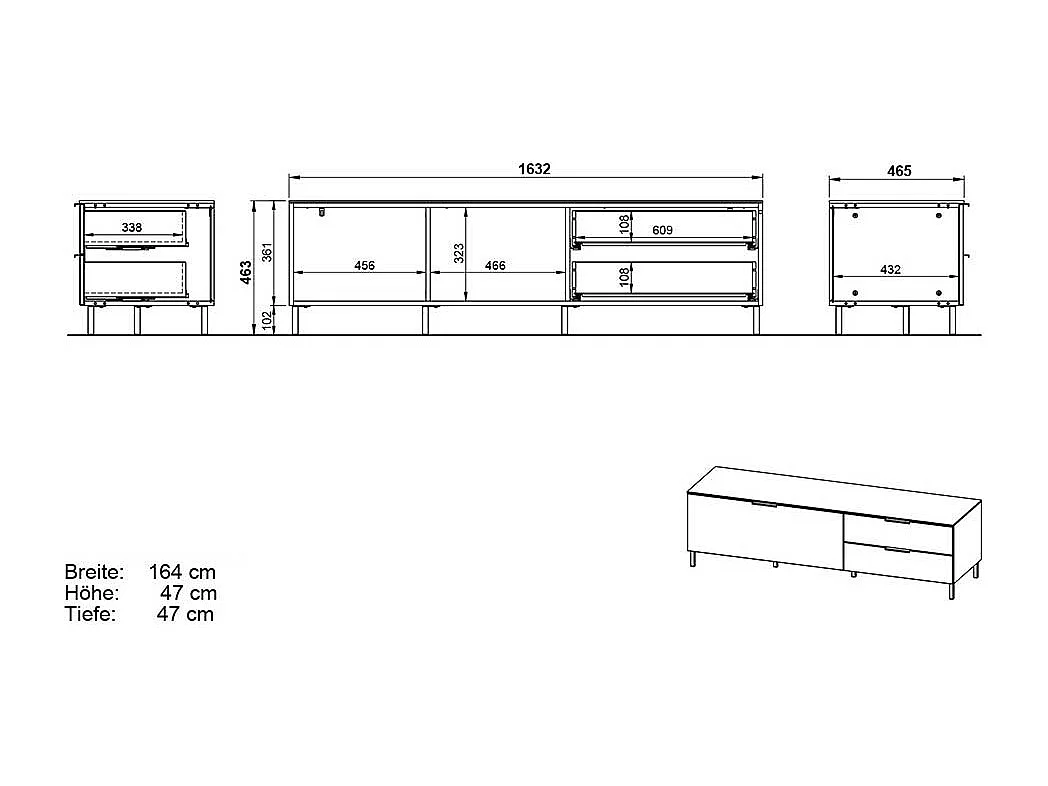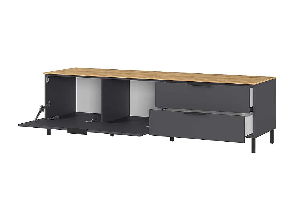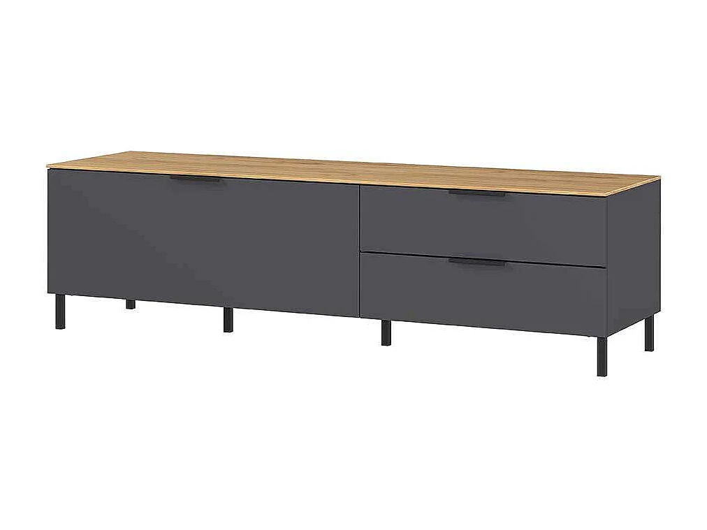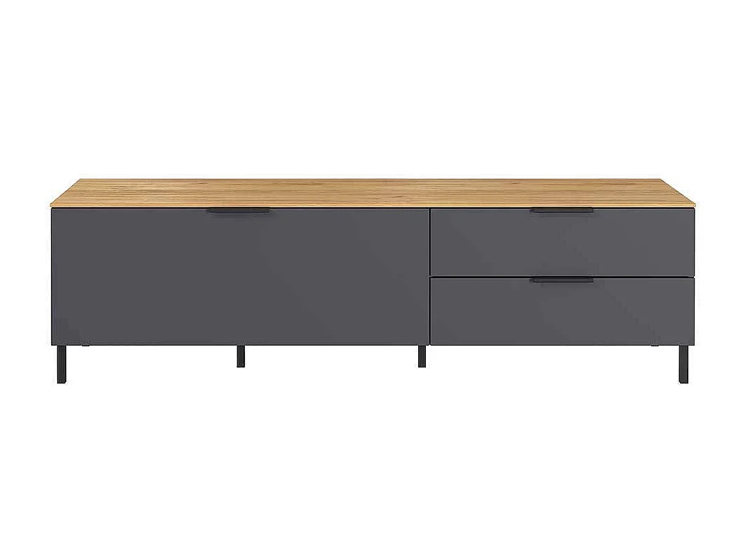 Fernsehmöbel Dunkelgrau und Wildeichefarben 2 Schubladen 1 Klappe