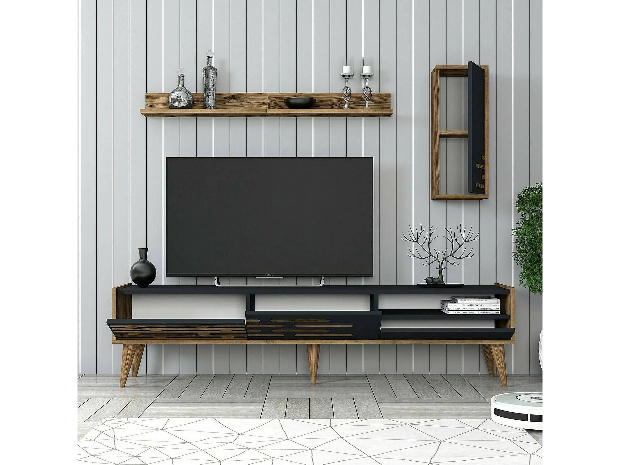 Fernsehschrank Dbrunozz, Ständer für Wohnzimmerfernseher, Niedriges Wohnzimmer-Sideboard, TV-Ständerbasis, 180x45h35 cm, Anthrazit und Nussbaum