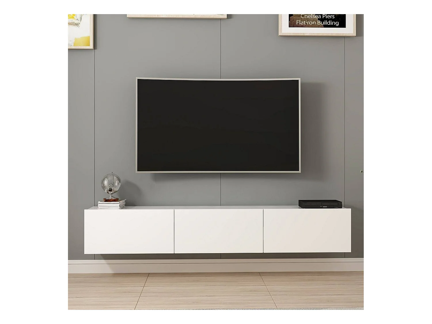 Fernsehschrank Dgiuseppemost, Ständer für Wohnzimmerfernseher, Niedriges Wohnzimmer-Sideboard, TV-Ständerbasis, 180x32 h30 cm, Weiß