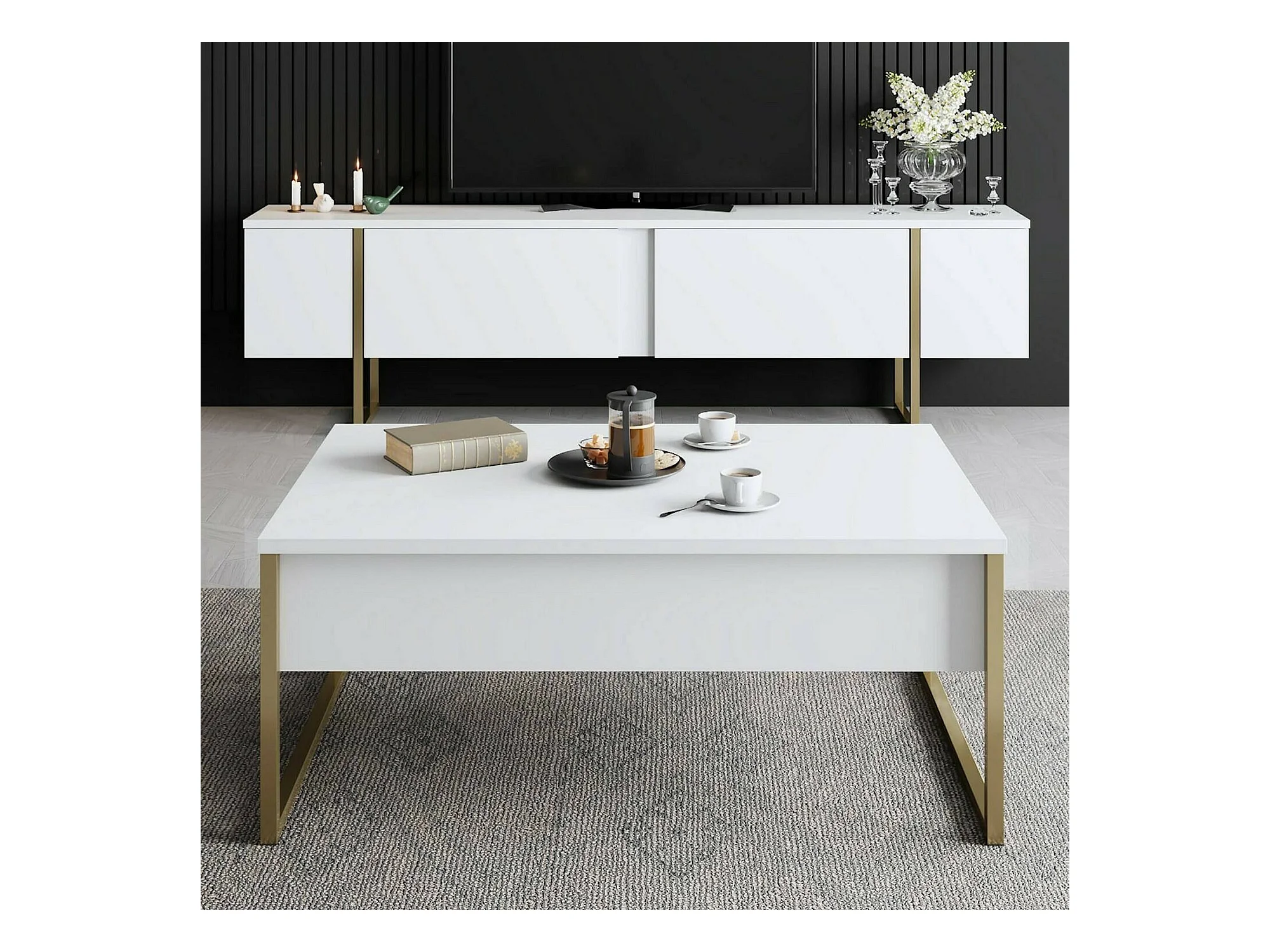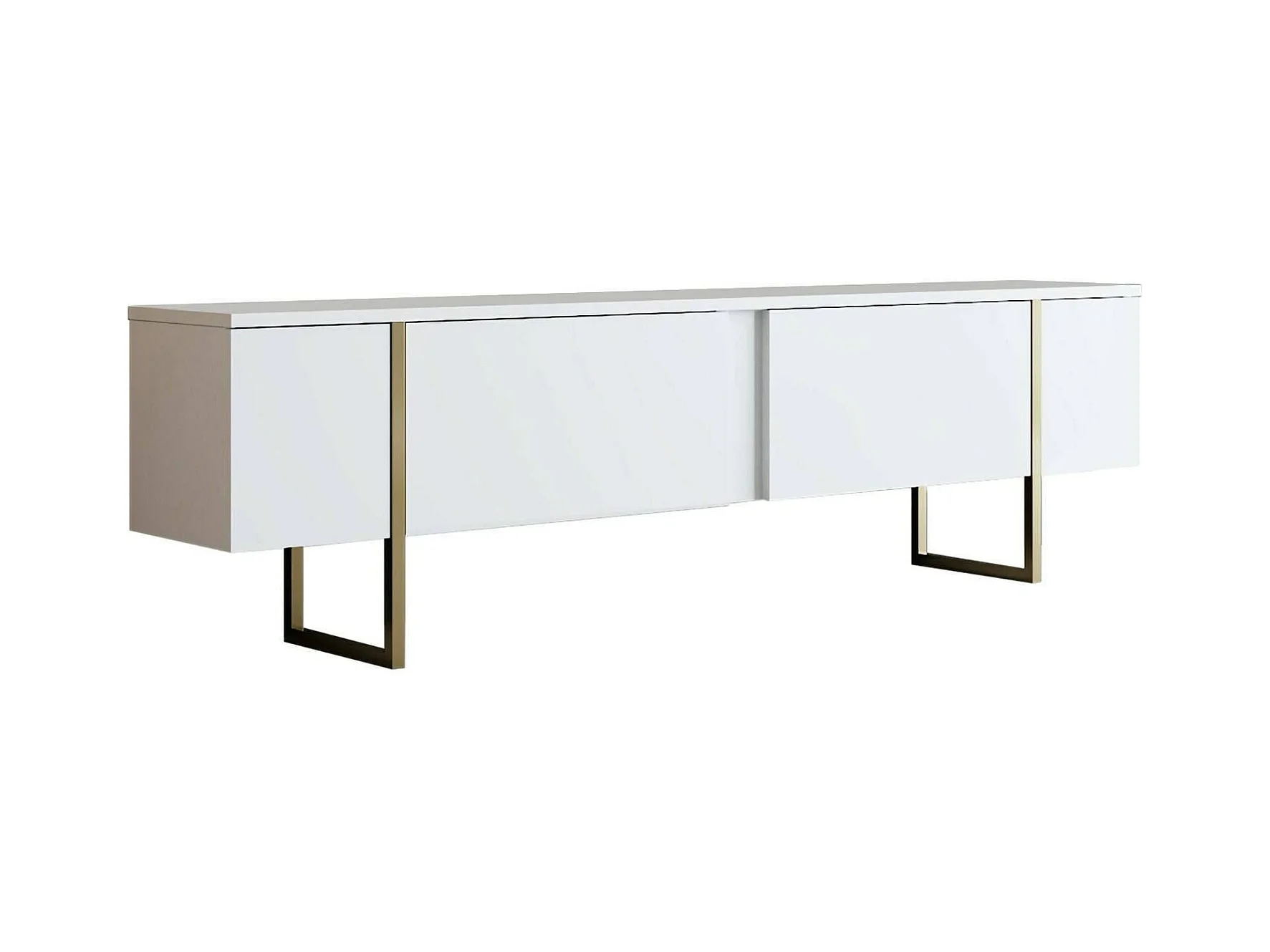 Fernsehschrank Dgridell, Ständer für Wohnzimmerfernseher, Niedriges Wohnzimmer-Sideboard, TV-Ständerbasis, 180x30h50 cm, Weiß und Gold