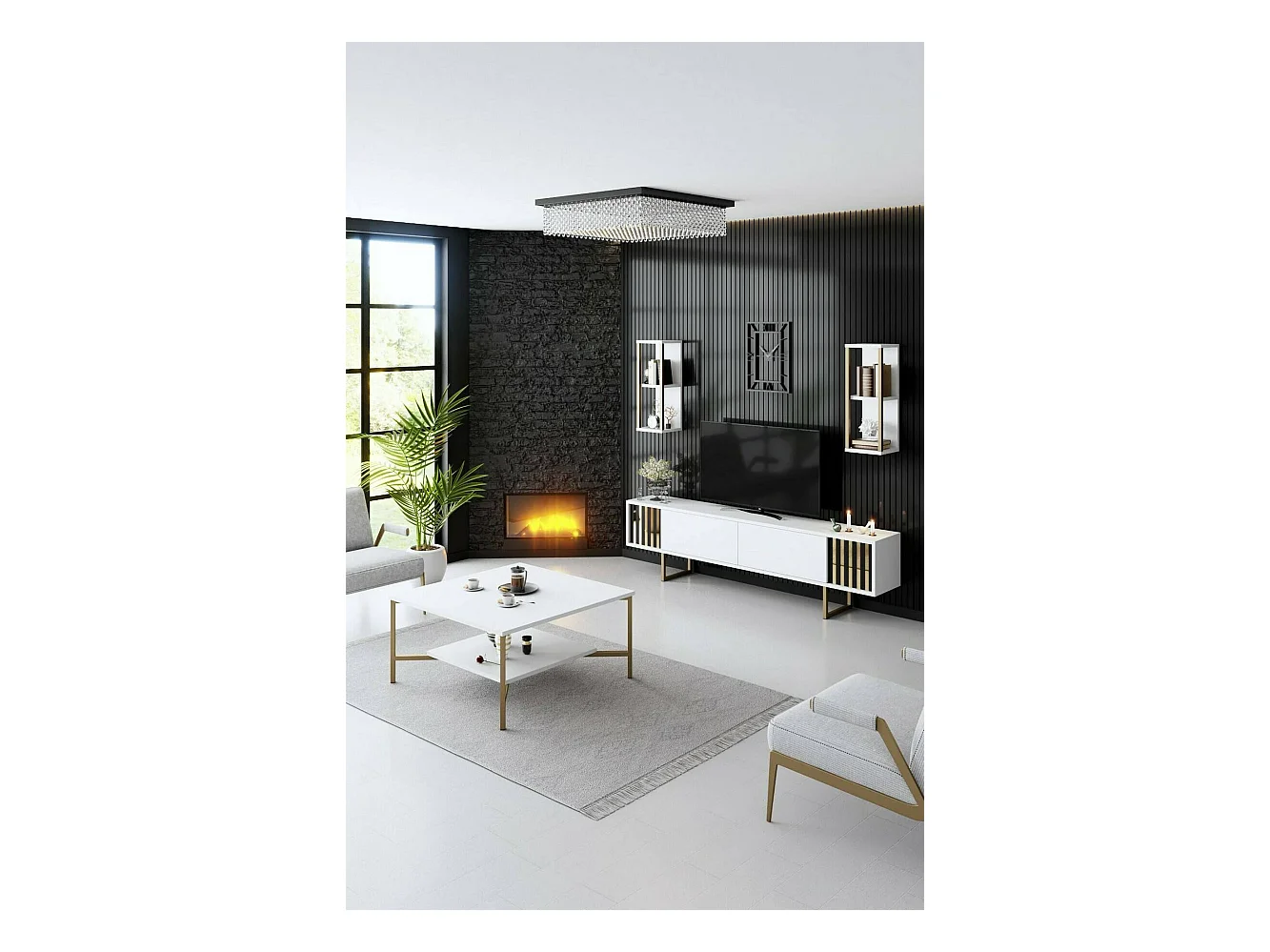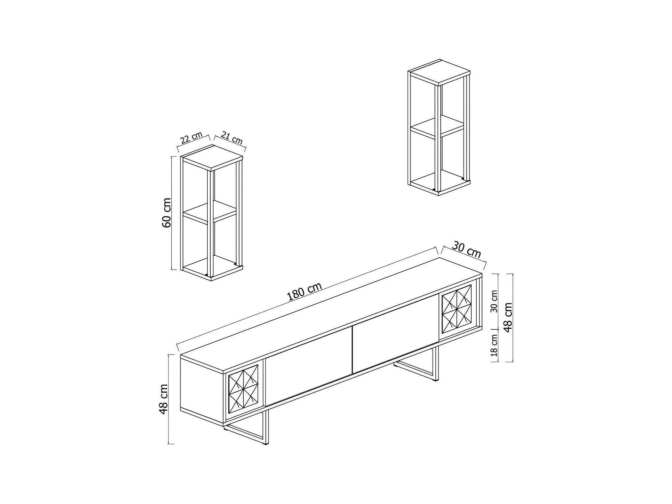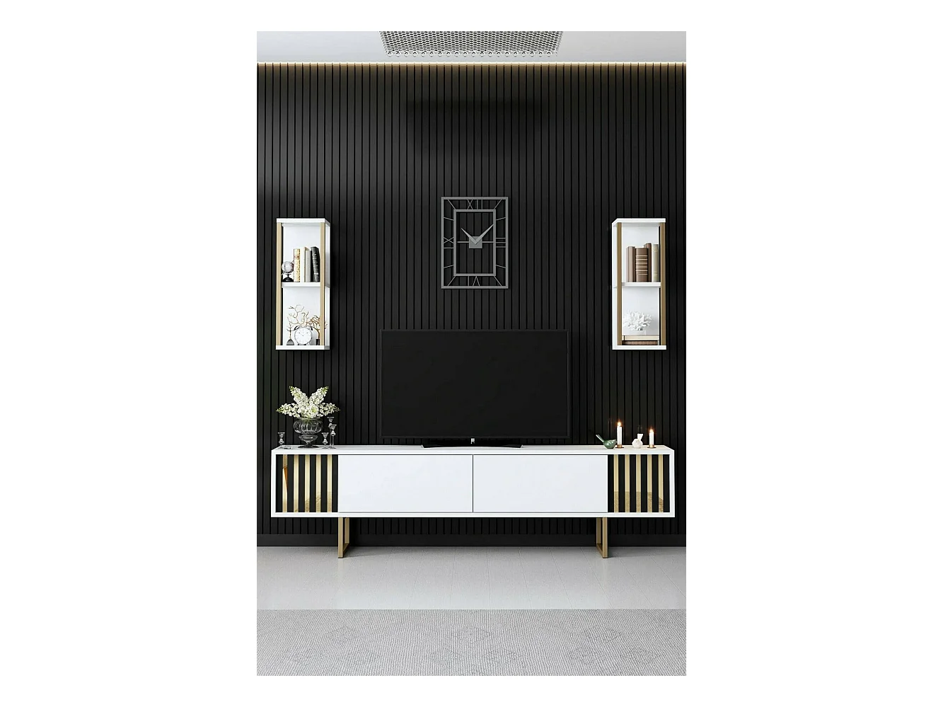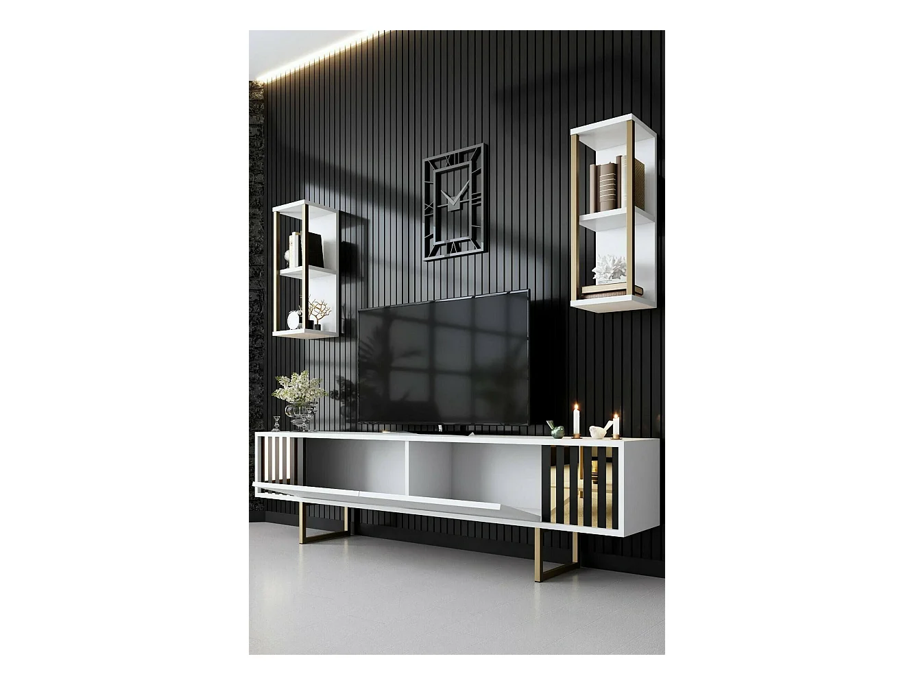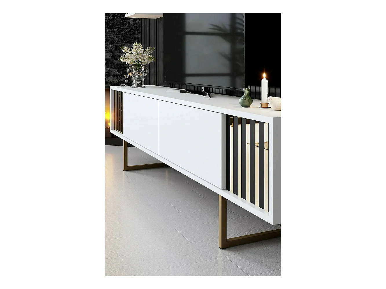 Fernsehschrank Dliveran, Ständer für Wohnzimmerfernseher, Niedriges Wohnzimmer-Sideboard, TV-Ständerbasis, 180x30h48 cm, Weiß und Schwarz