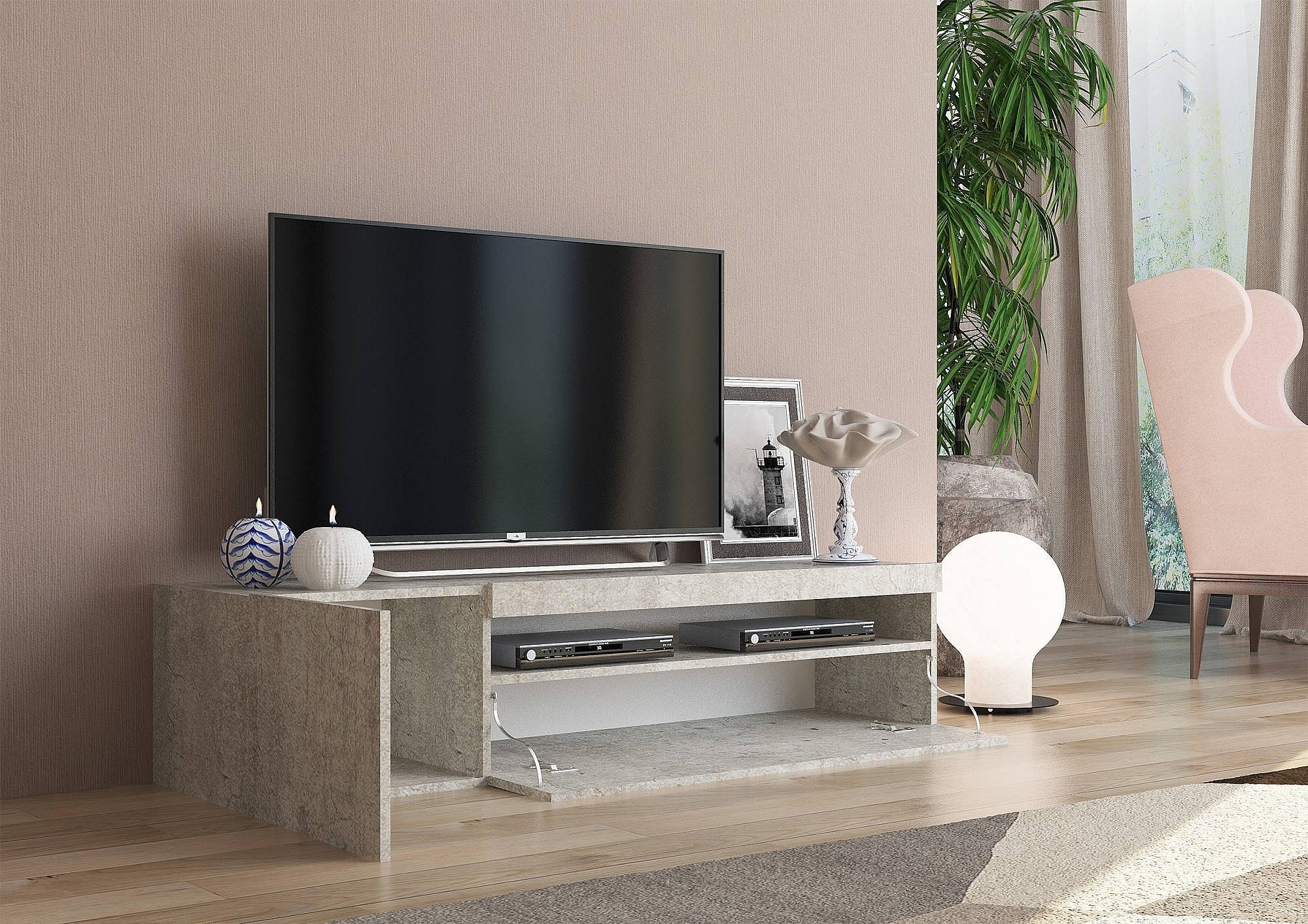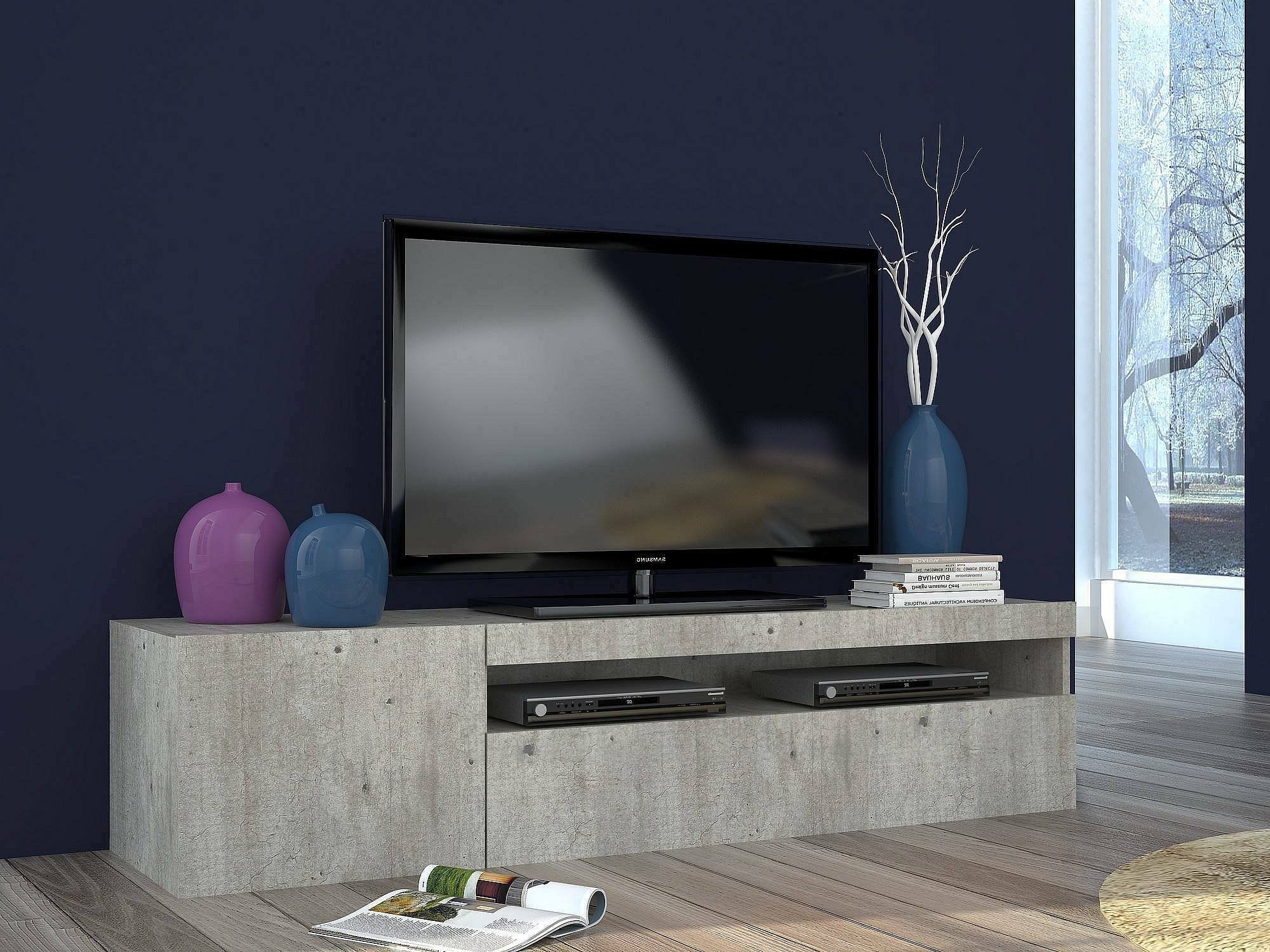 Fernsehschrank Dmangoni, Niedriges Sideboard für Wohnzimmer mit 2 Türen, Sockel für TV-Möbel, 100 % Made in Italy, cm 150x40h37, Zement