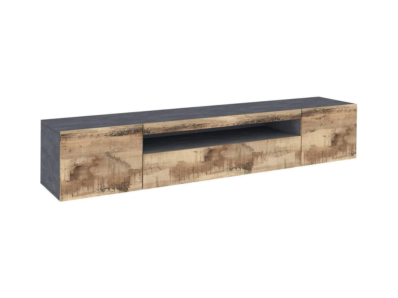 Fernsehschrank Dmarso, Niedriges Sideboard für Wohnzimmer mit 3 Türen, Sockel für TV-Möbel, 100 % Made in Italy, cm 200x40h37, Schiefer und Ahorn