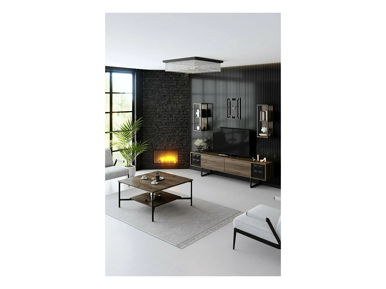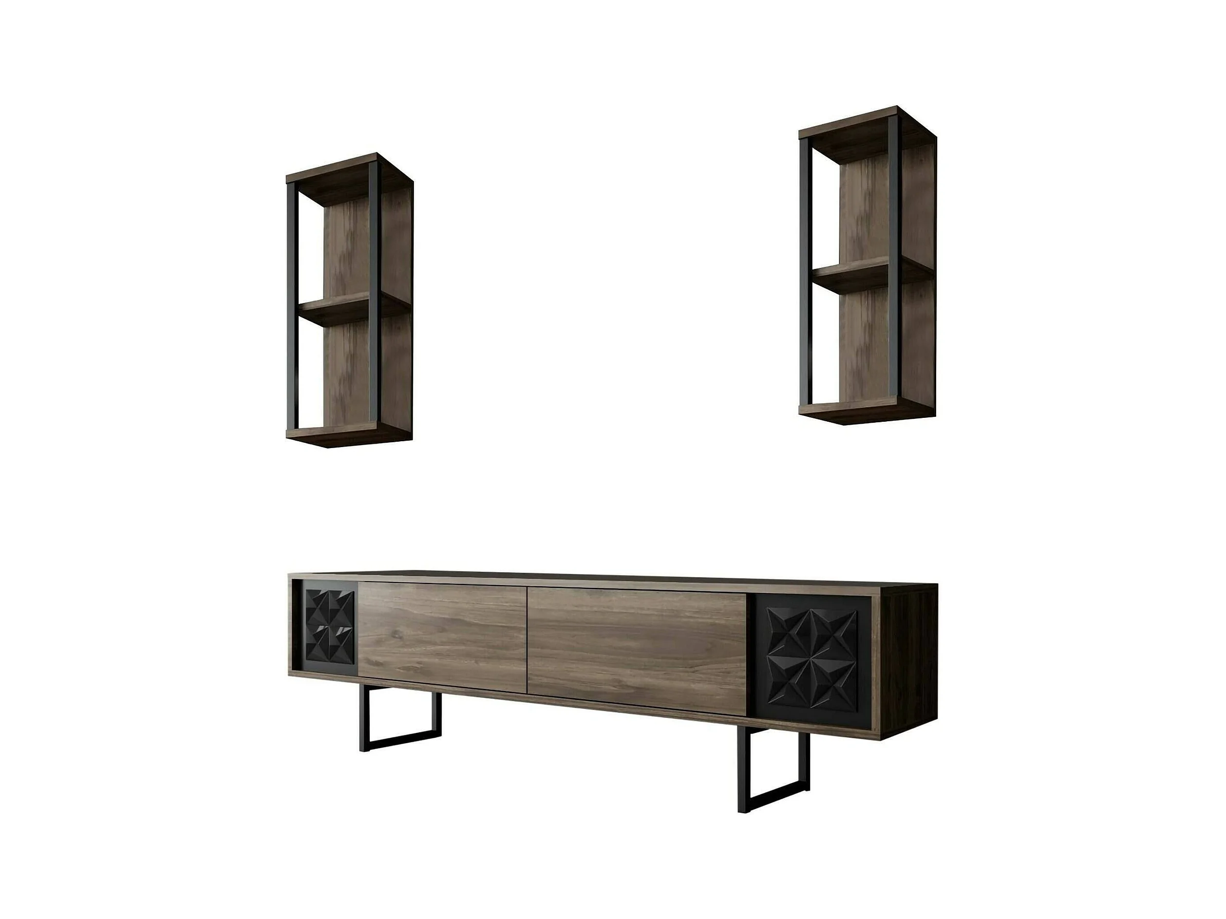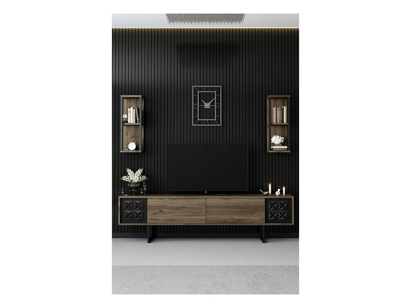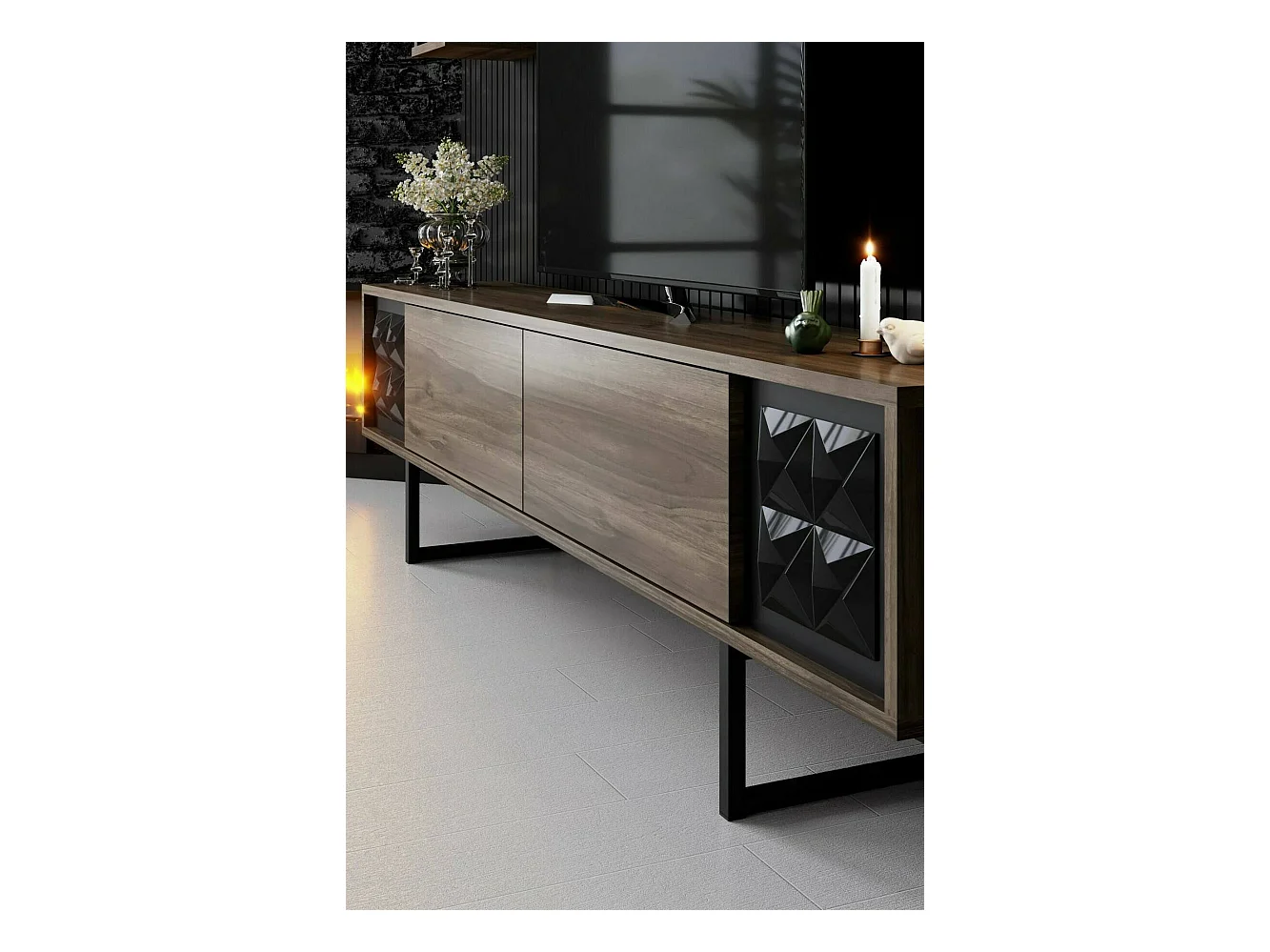 Fernsehschrank Dmiggian, Ständer für Wohnzimmerfernseher, Niedriges Wohnzimmer-Sideboard, TV-Ständerbasis, 180x30h48 cm, Walnuss und Schwarz