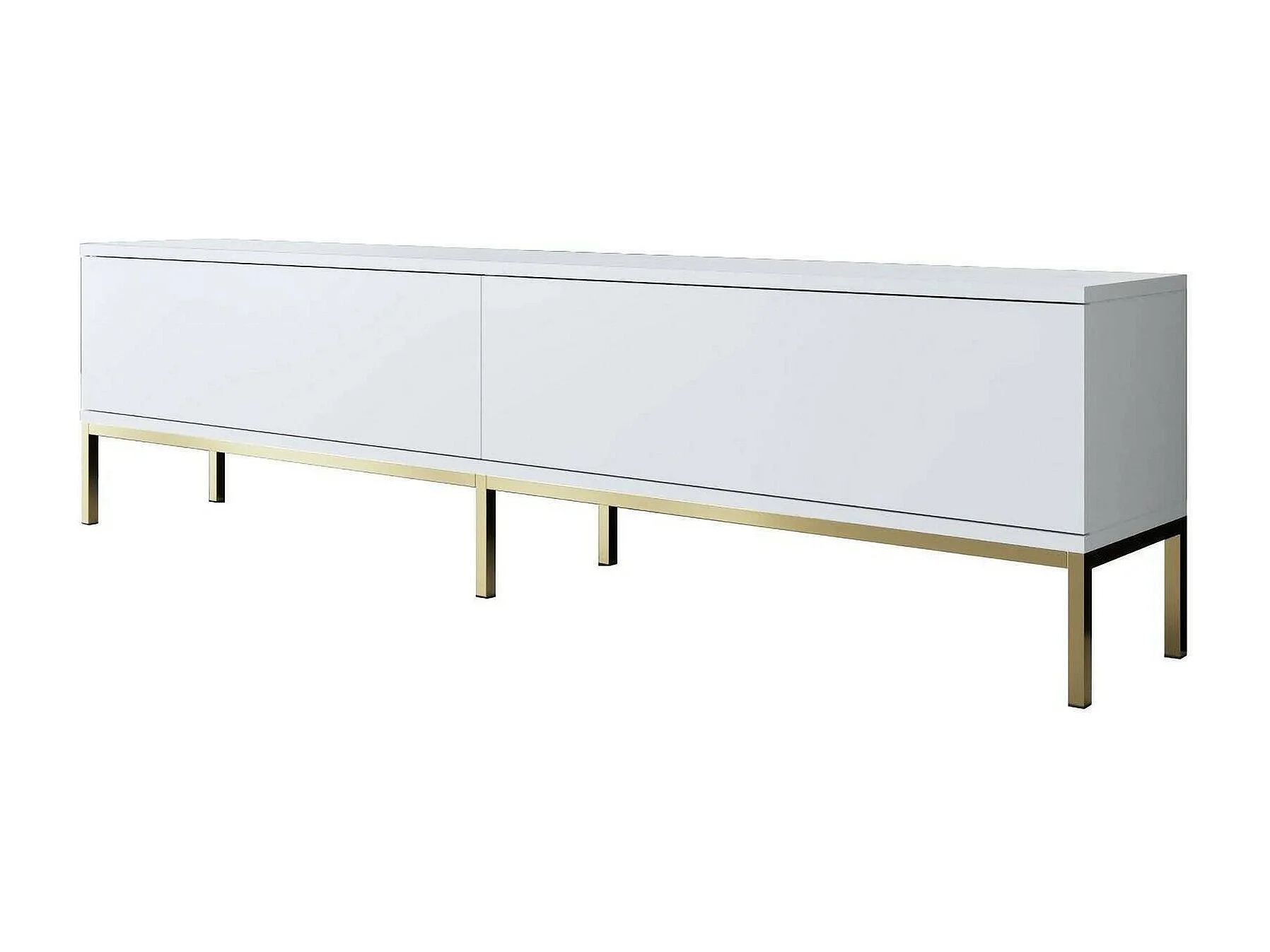 Fernsehschrank Dpetrell, Ständer für Wohnzimmerfernseher, Niedriges Wohnzimmer-Sideboard, TV-Ständerbasis, 180x30h47 cm, Weiß und Gold