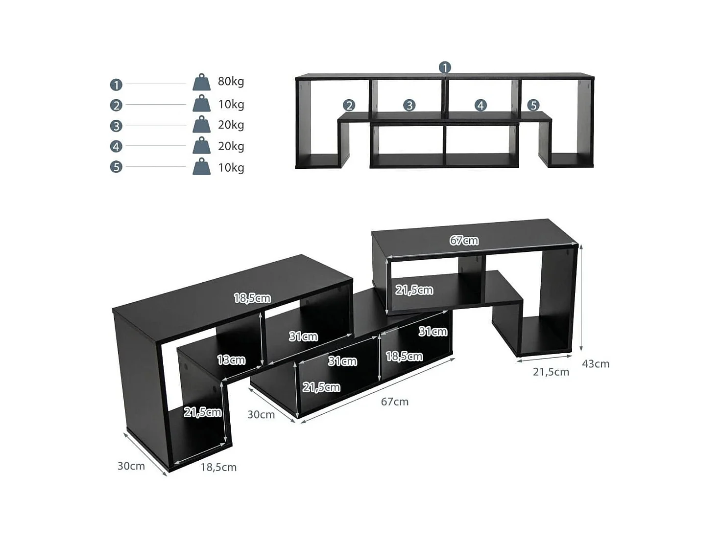 Fernsehschrank Holz 3-Teilig Frei Kombinierbar Fernsehtisch für TVs bis zu 65"