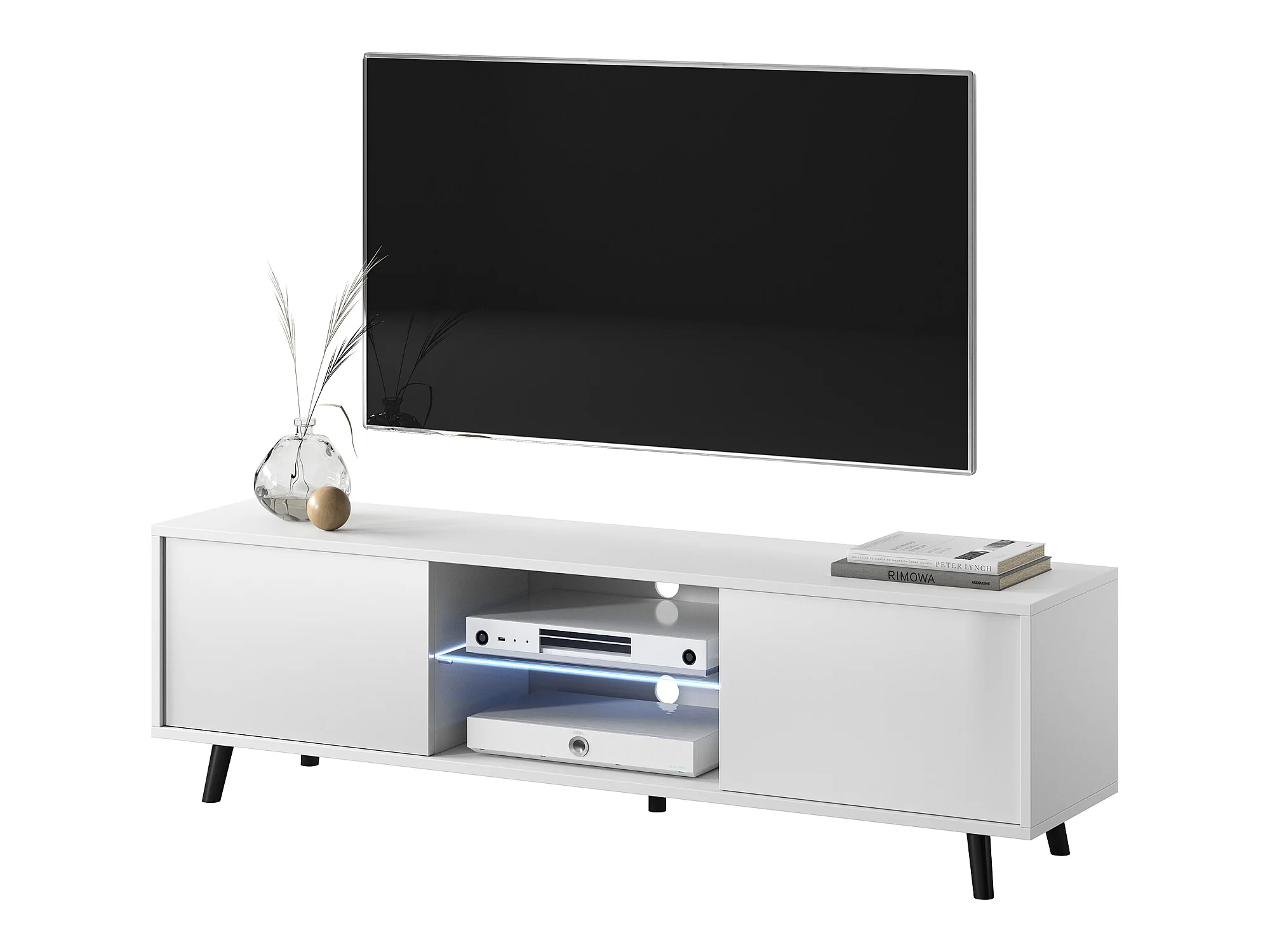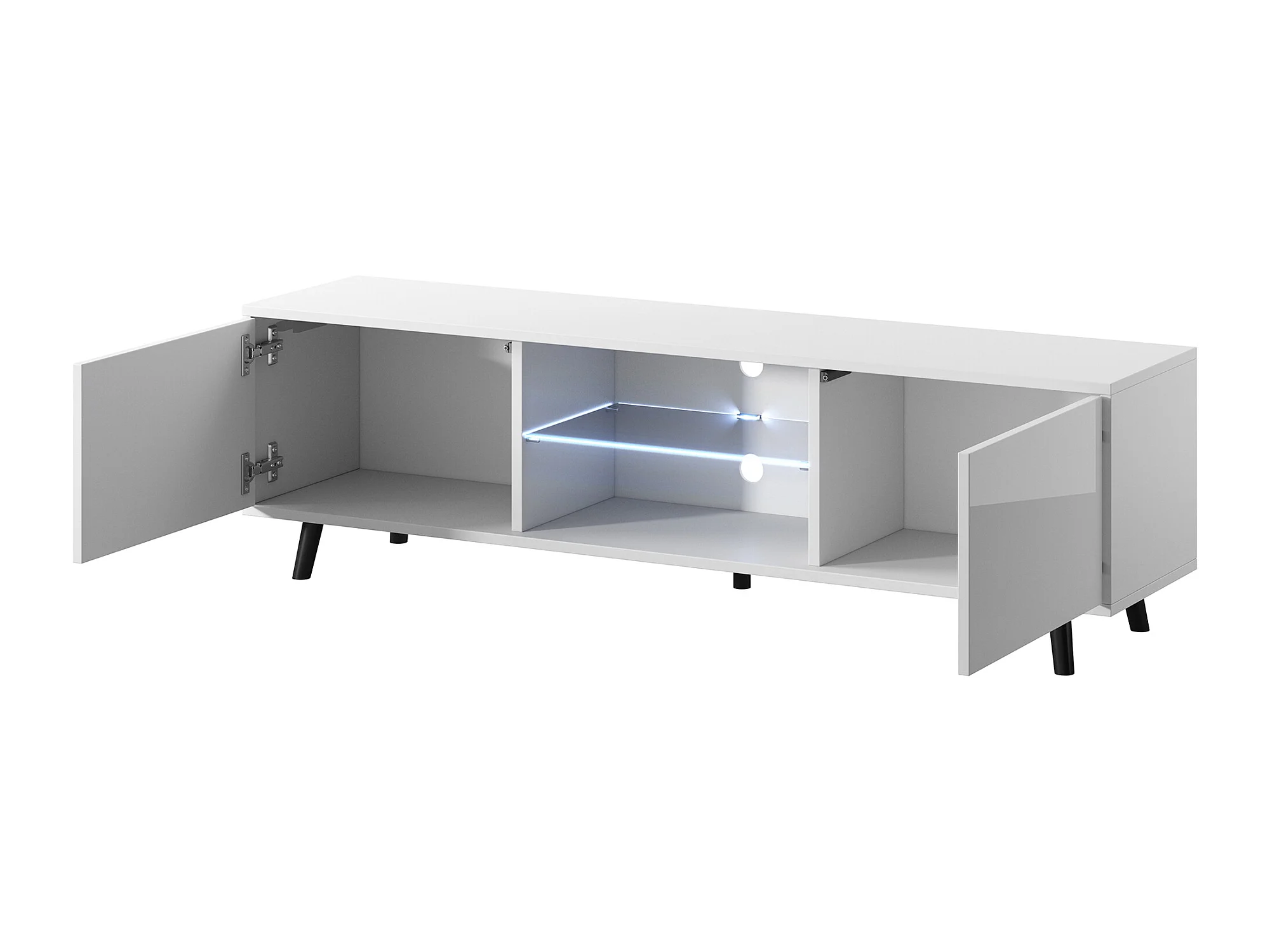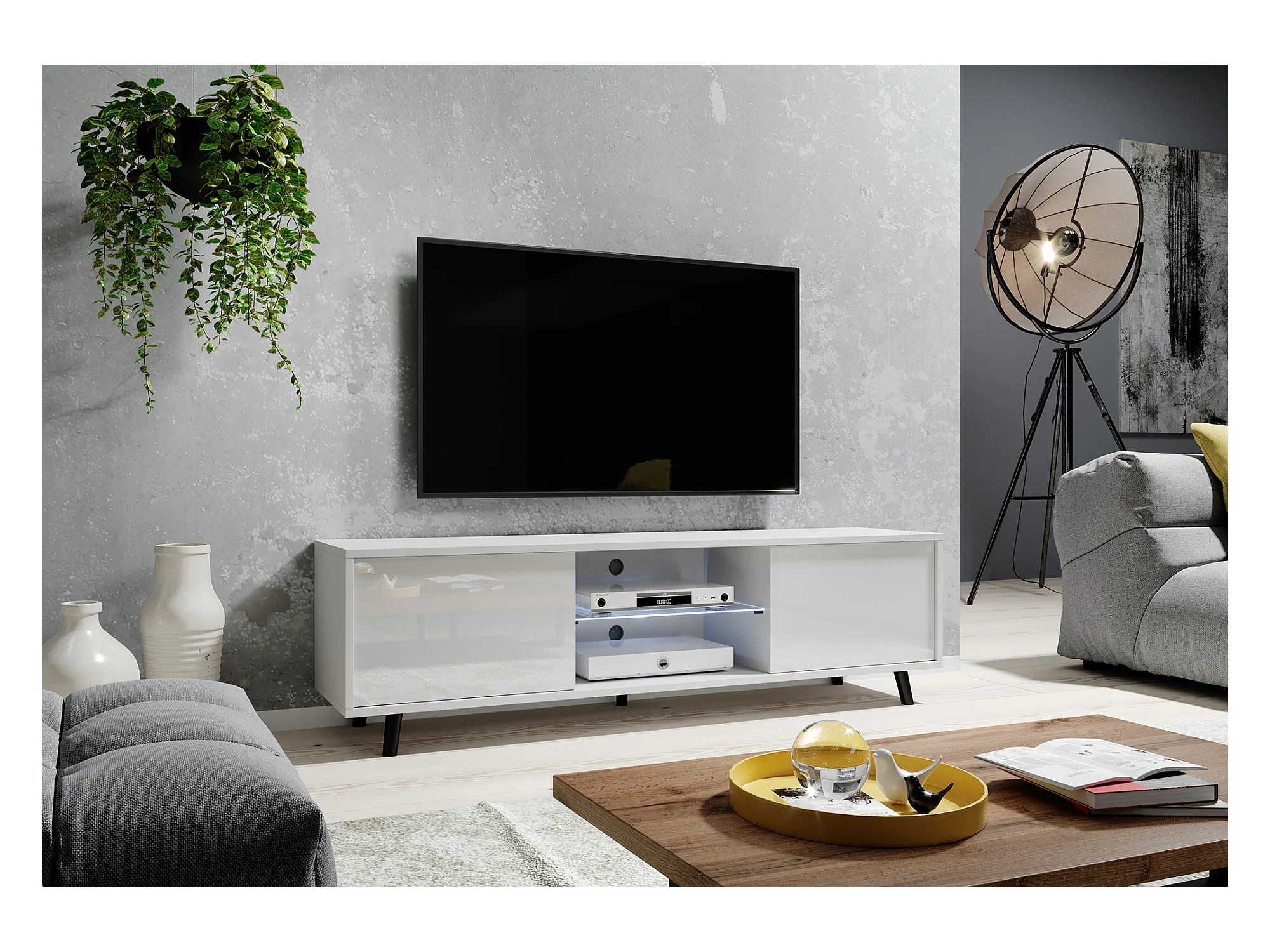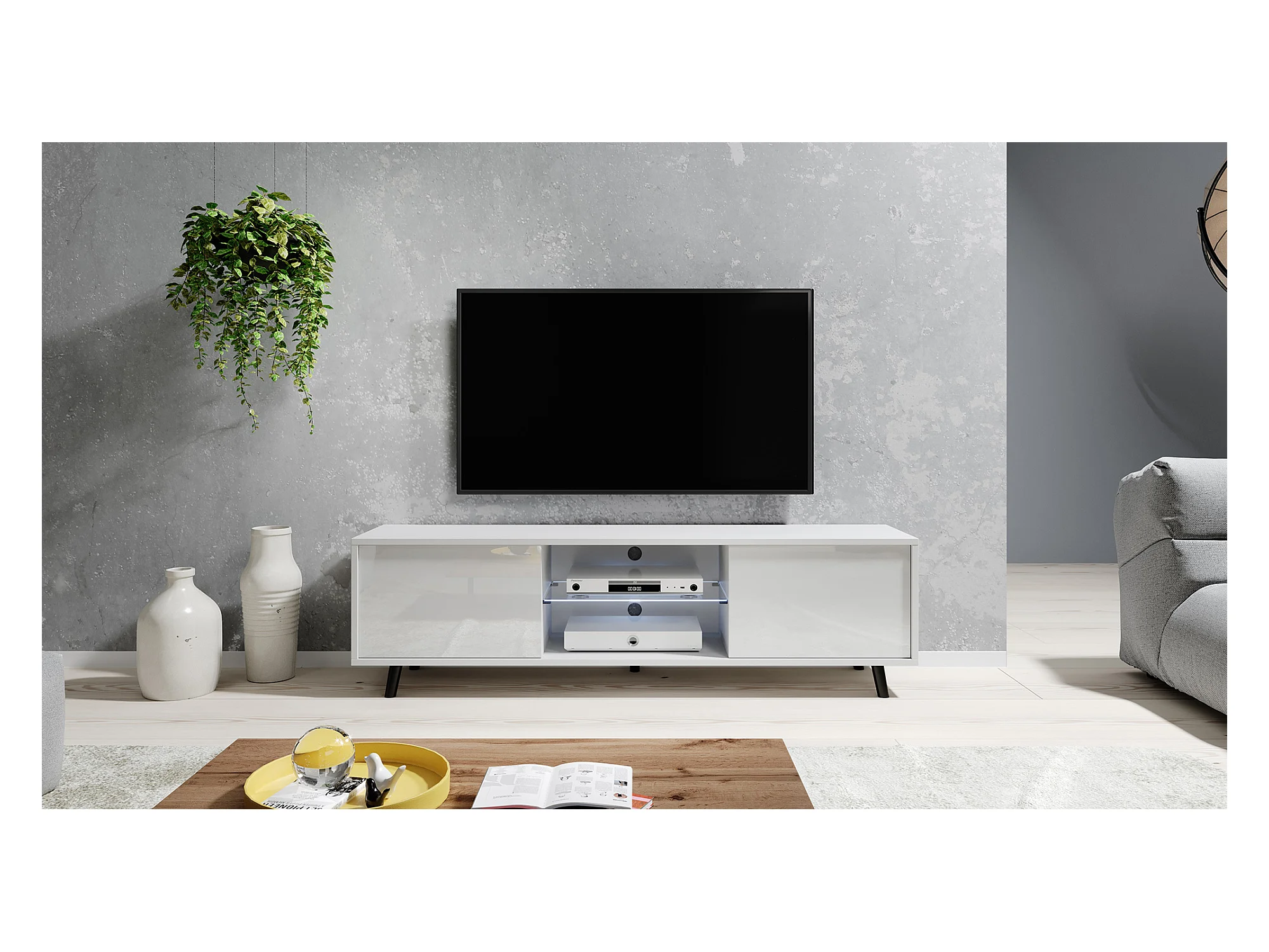 Fernsehschrank / modernes TV-Board mit Füßen und LED - 140 cm breit - Weiß Matt / Weiß Hochglanz - LEFYR