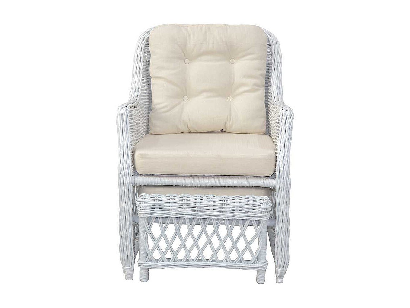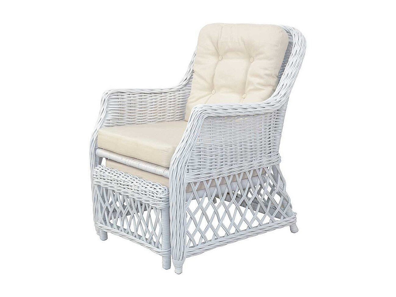 Fernsehsessel in Wei� Rattan integriertem Fu�teil