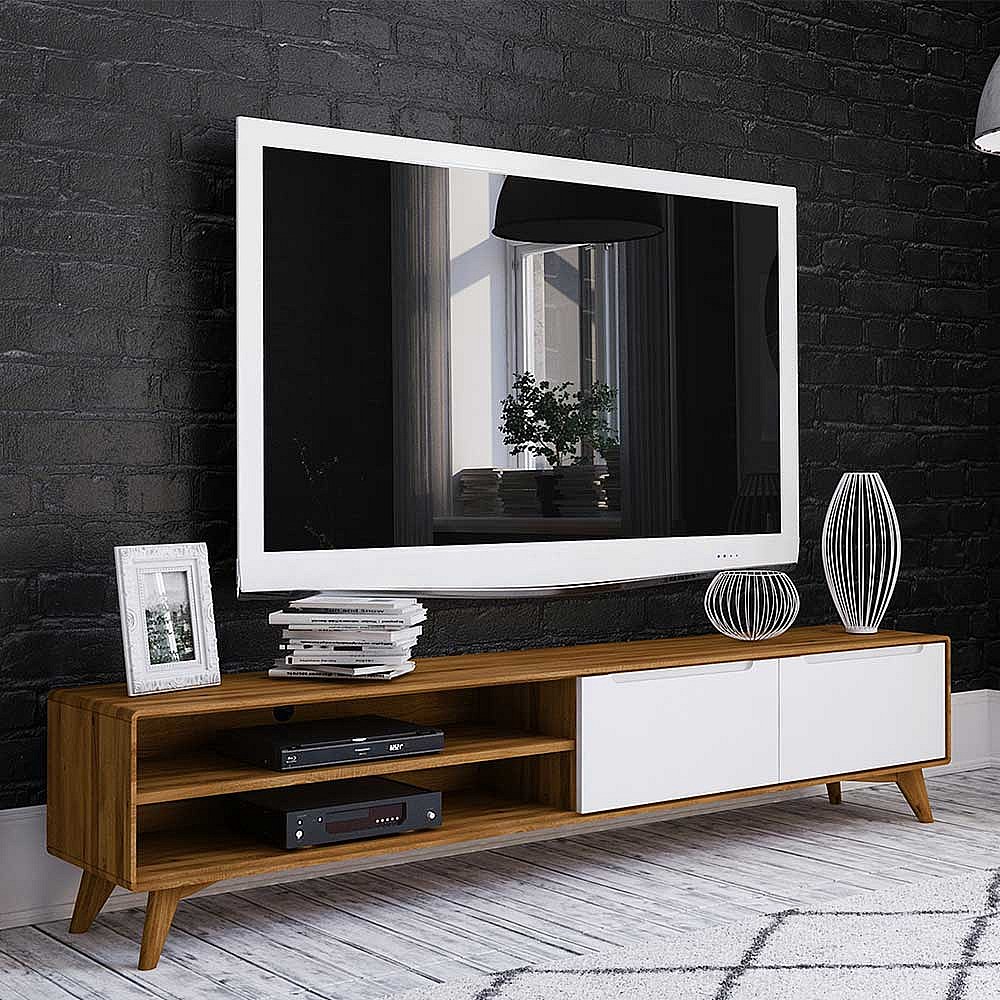 Fernsehtisch in Weiß und Wildeiche 220 cm breit