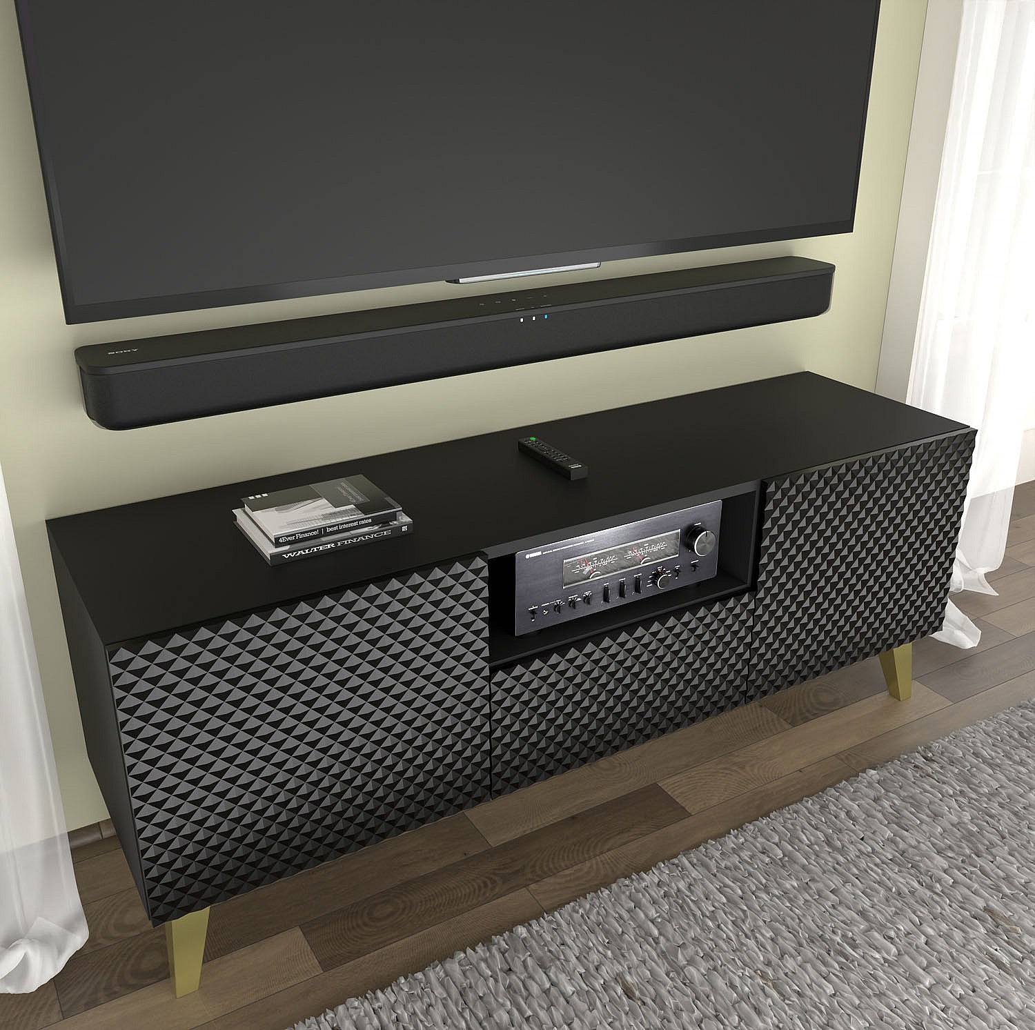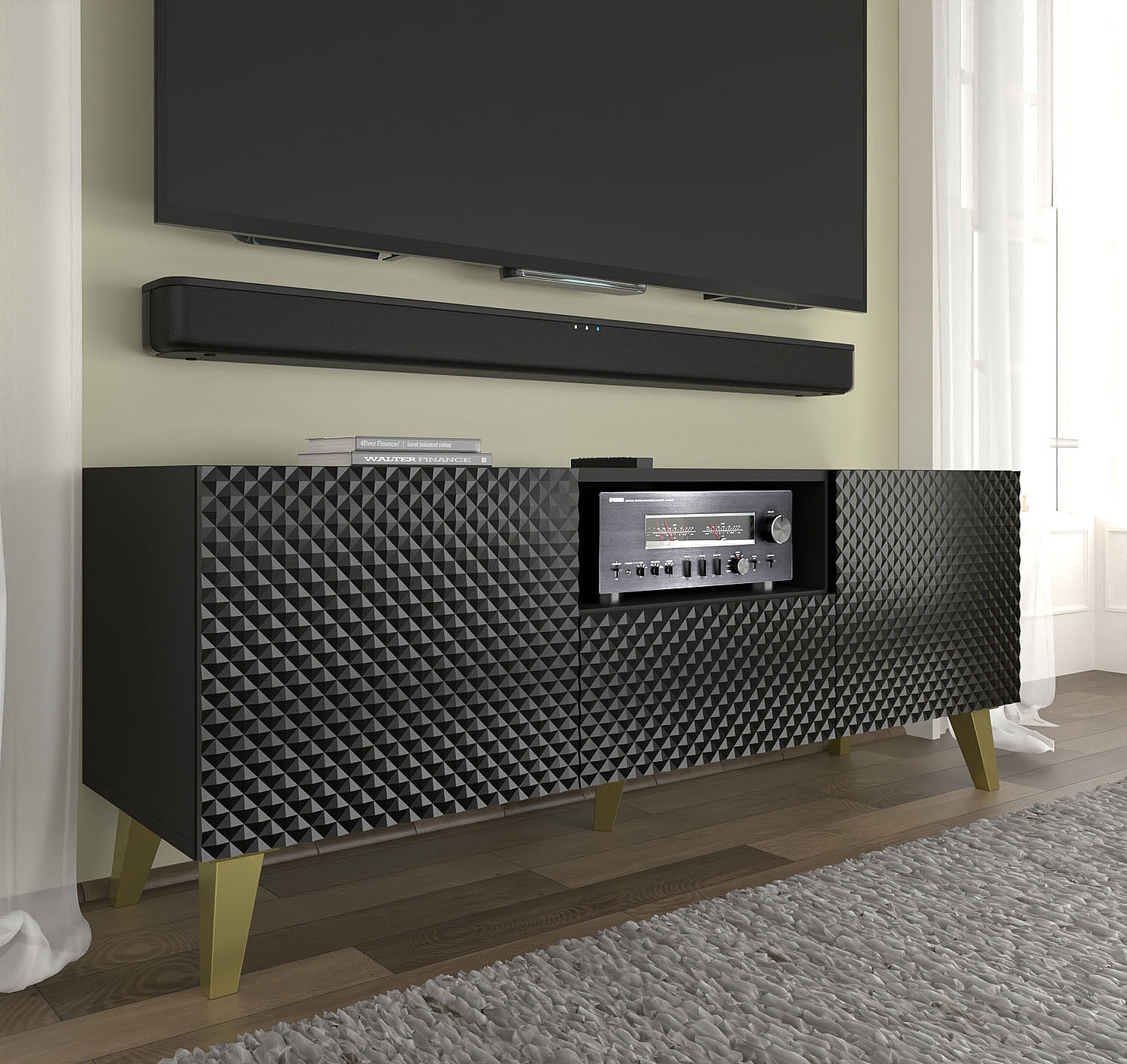 Fernsehtisch Ravenna PC RTV150 2D1S 150x42x56 Schwarz & Golden