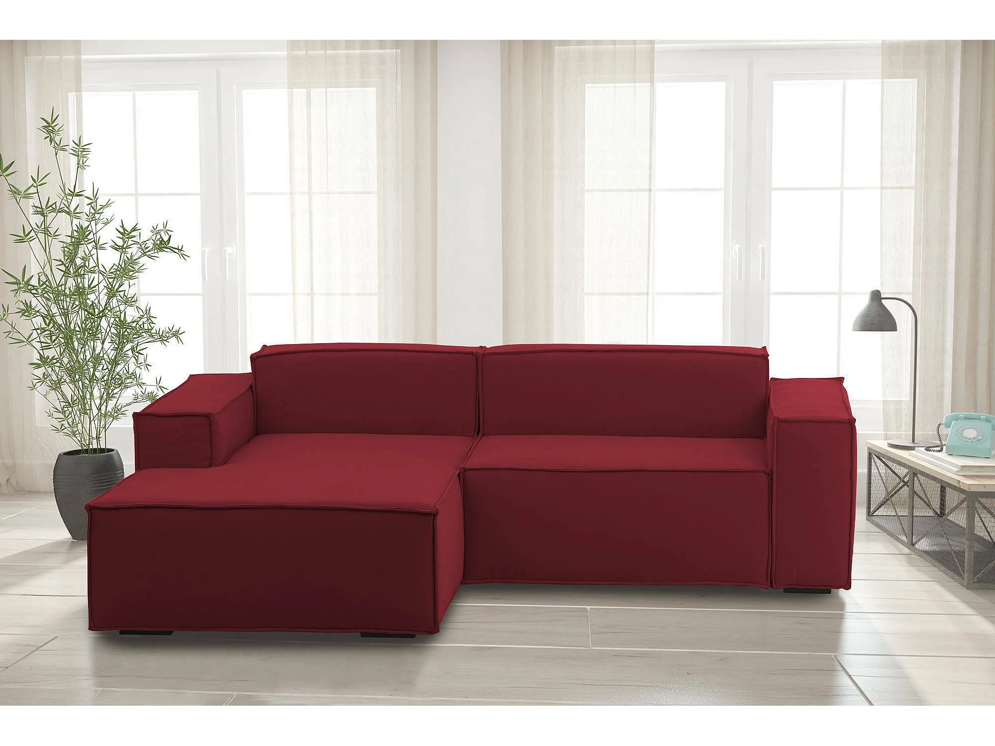 Festes Sofa Dkivil, Modulares 2-Sitzer-Sofa mit linker Halbinsel, 100% Made in Italy, Modernes Sofa aus Stoff, Cm 220x170h70, Rot