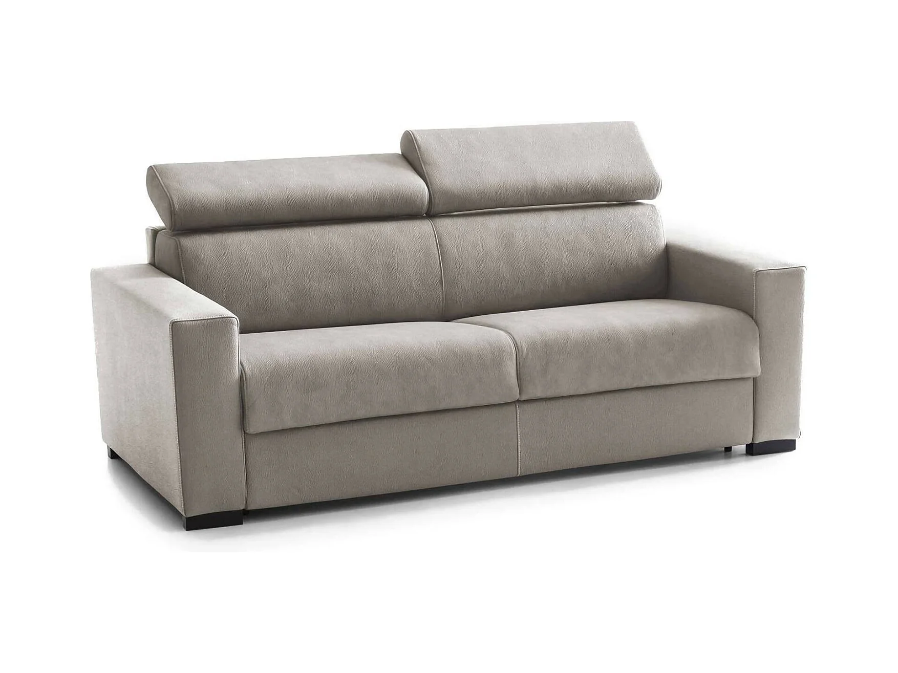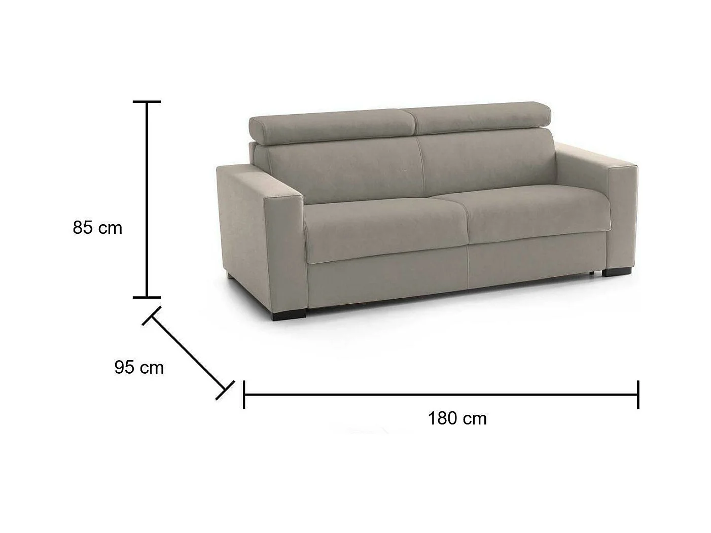 Sofá fijo 2 plazas Leila, Sofá de tela acolchada, Reposacabezas regulables y reposabrazos estándar, 100% Made in Italy, Cm 180x95h85, Taupe