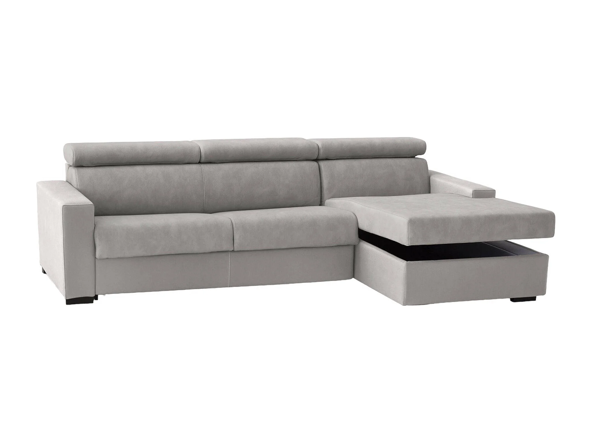 Sofá fijo con península Marica, Sofá rinconera con chaise longue derecho en tela, Reposabrazos estándar, 100% Made in Italy, 280x95h85 cm, Gris