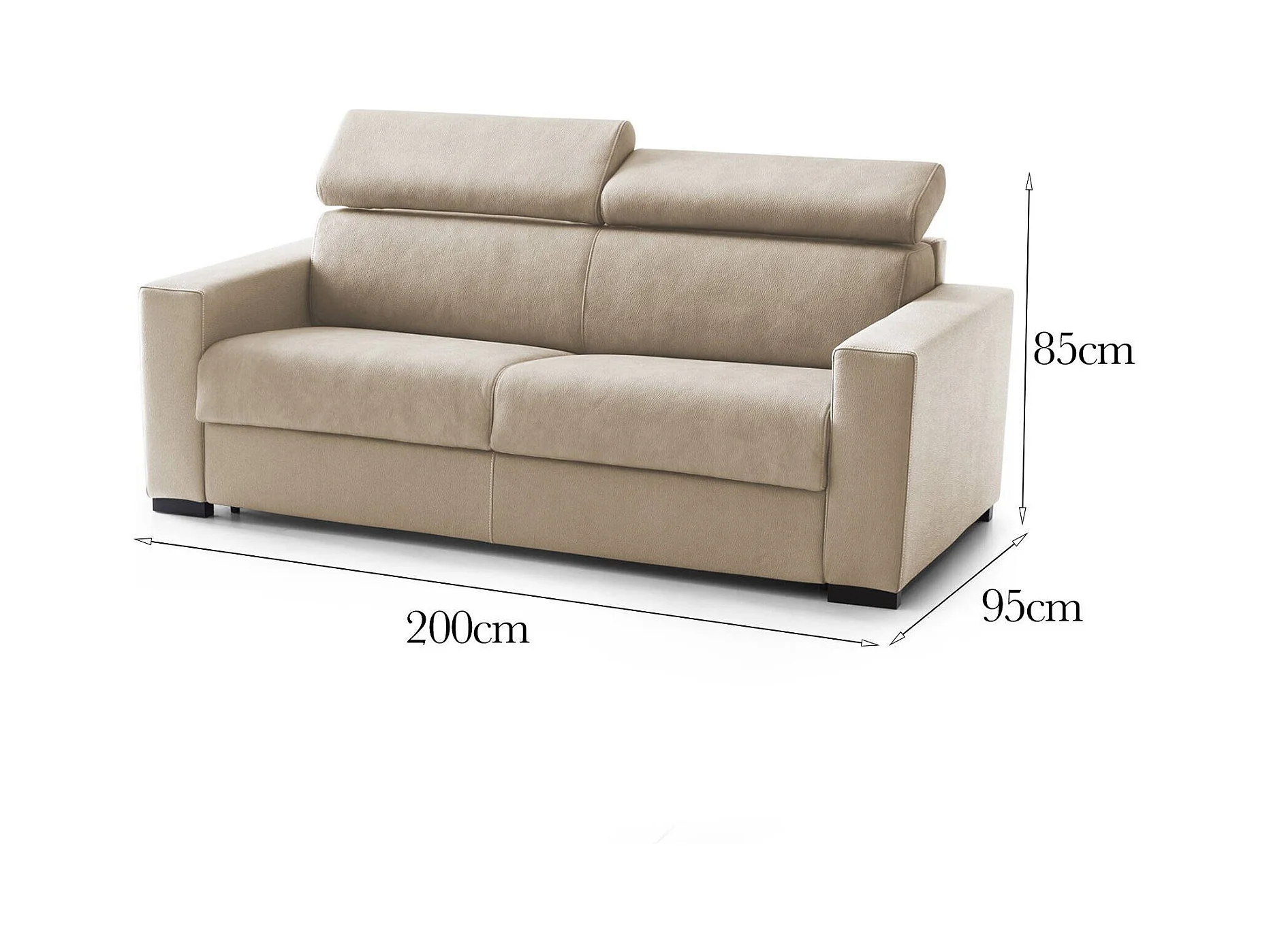 Sofá fijo 2 plazas Monica, sofá de tela acolchada, reposacabezas regulables y reposabrazos estándar, 100% Made in Italy, 200x95h85 cm, Beige