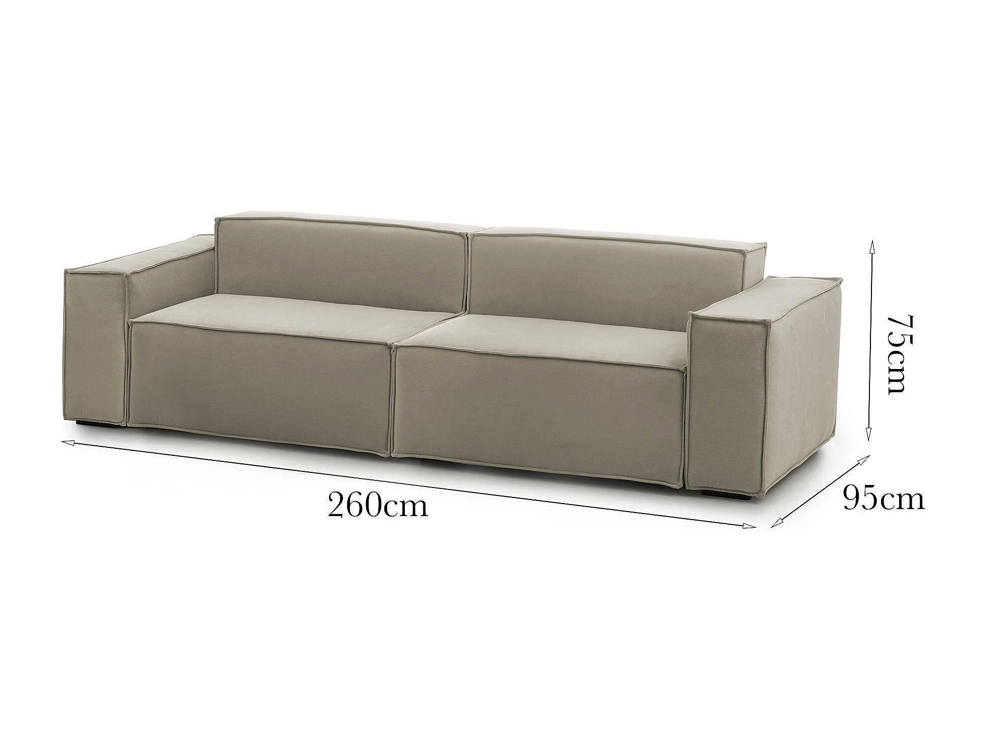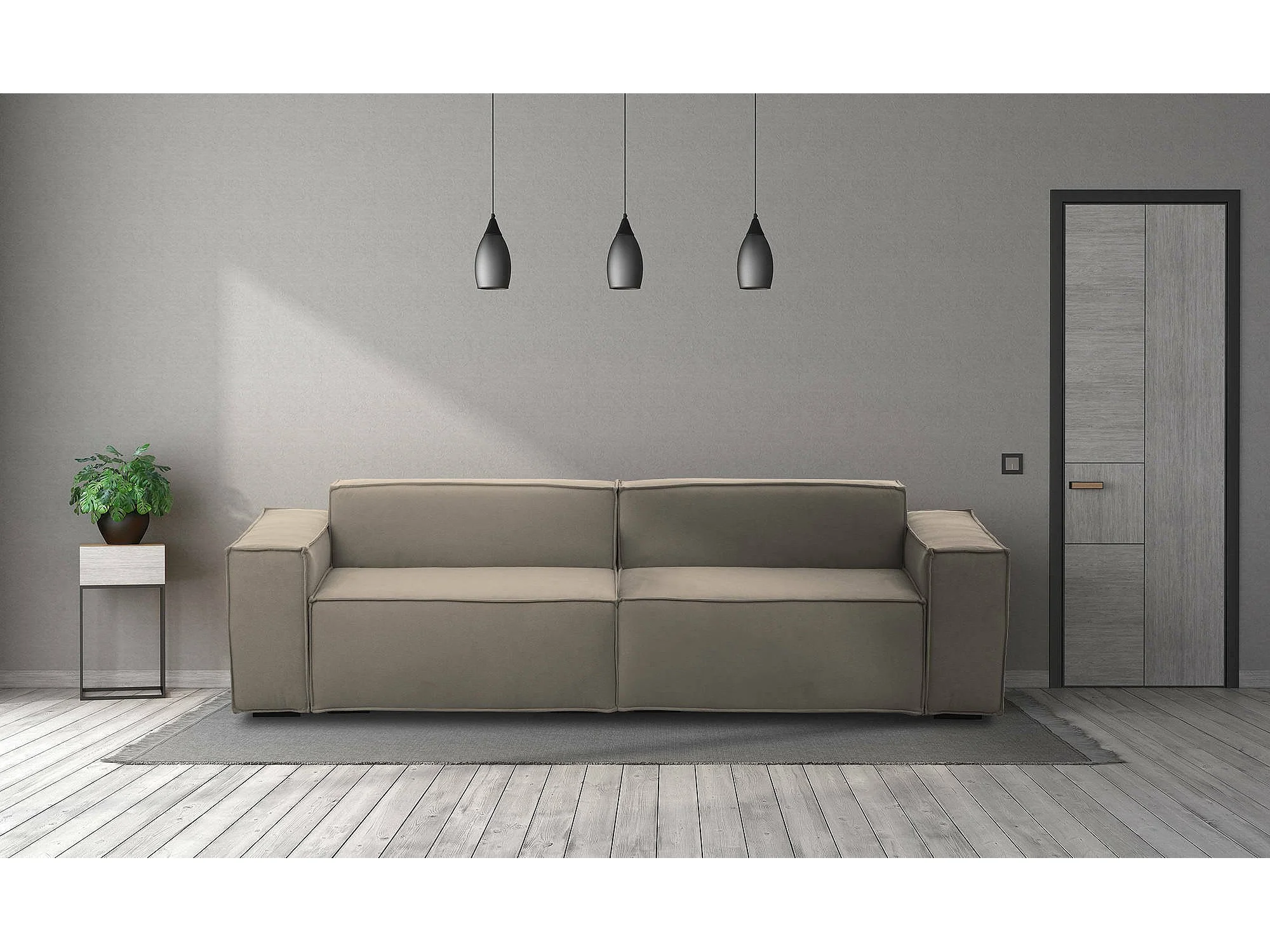 Festes Sofa Simona, Lineares modulares 3-Sitzer-Sofa, 100% Made in Italy, Modernes Wohnzimmersofa aus Stoff, Cm 260x95h70, Turteltaube